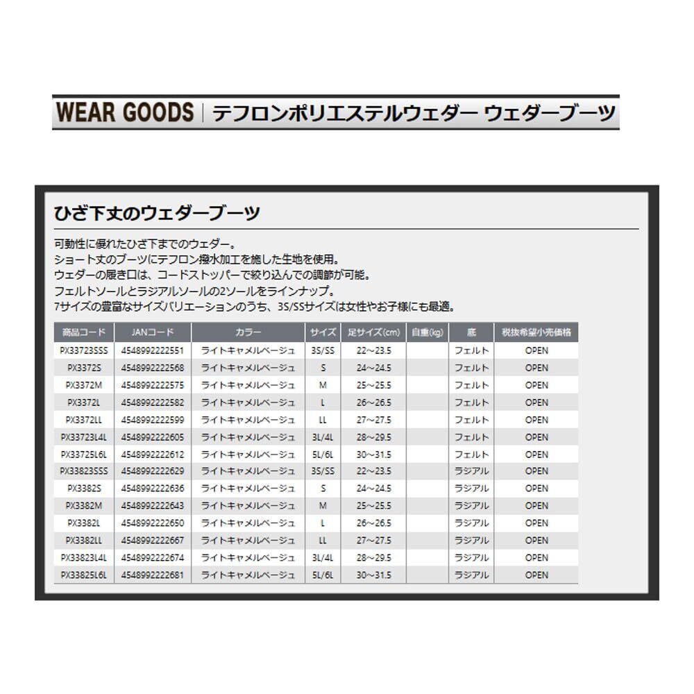 [プロックス] テフロンポリエステルウェダーブーツ ソールタイプ:フェルト(PX3372)/ラジアル(PX3382) サイズバリエーション豊富なフィッシングブーツ