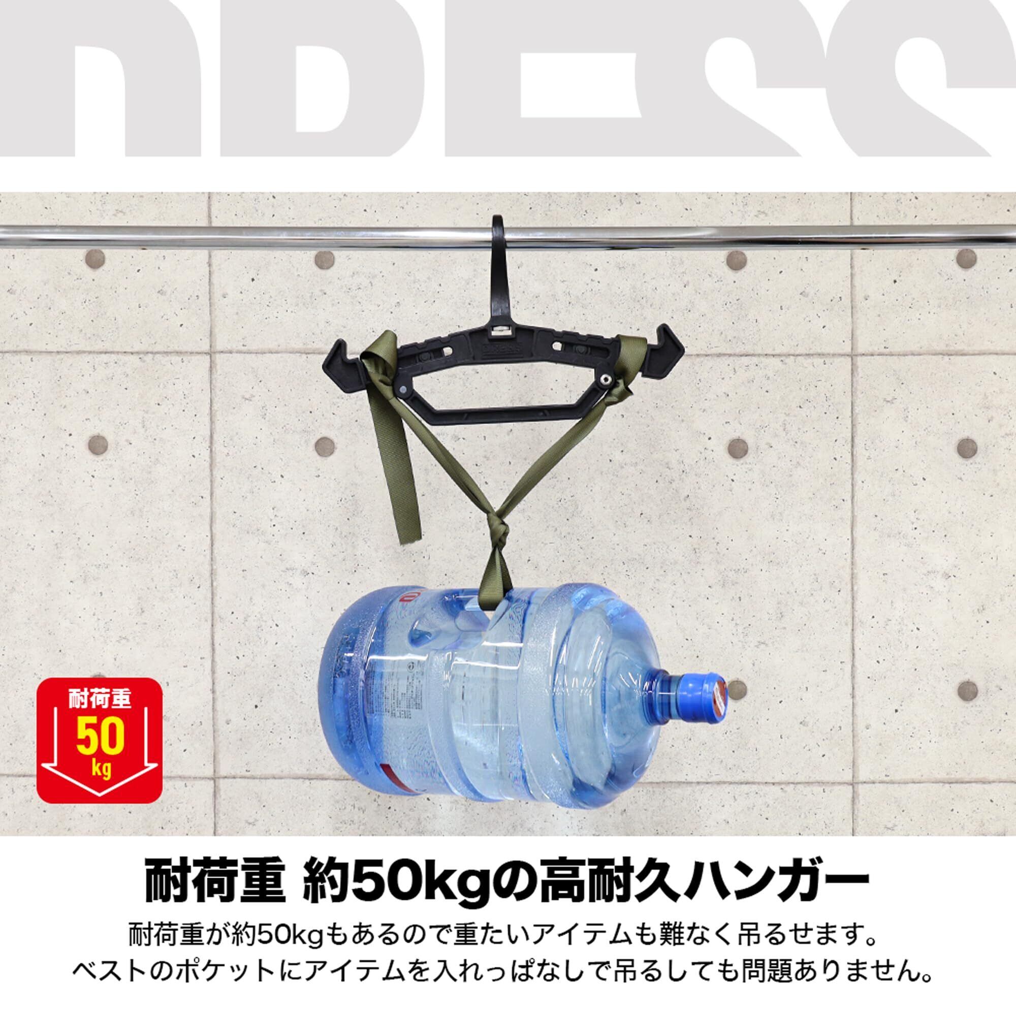 ドレス(DRESS) ヘビーハンガー BLACK 可変式ギミック 耐荷重50㎏ 最大31㎜ パイプ対応 ウェーダー 胴長 ウェットスーツ 長さ向き調整 ベスト