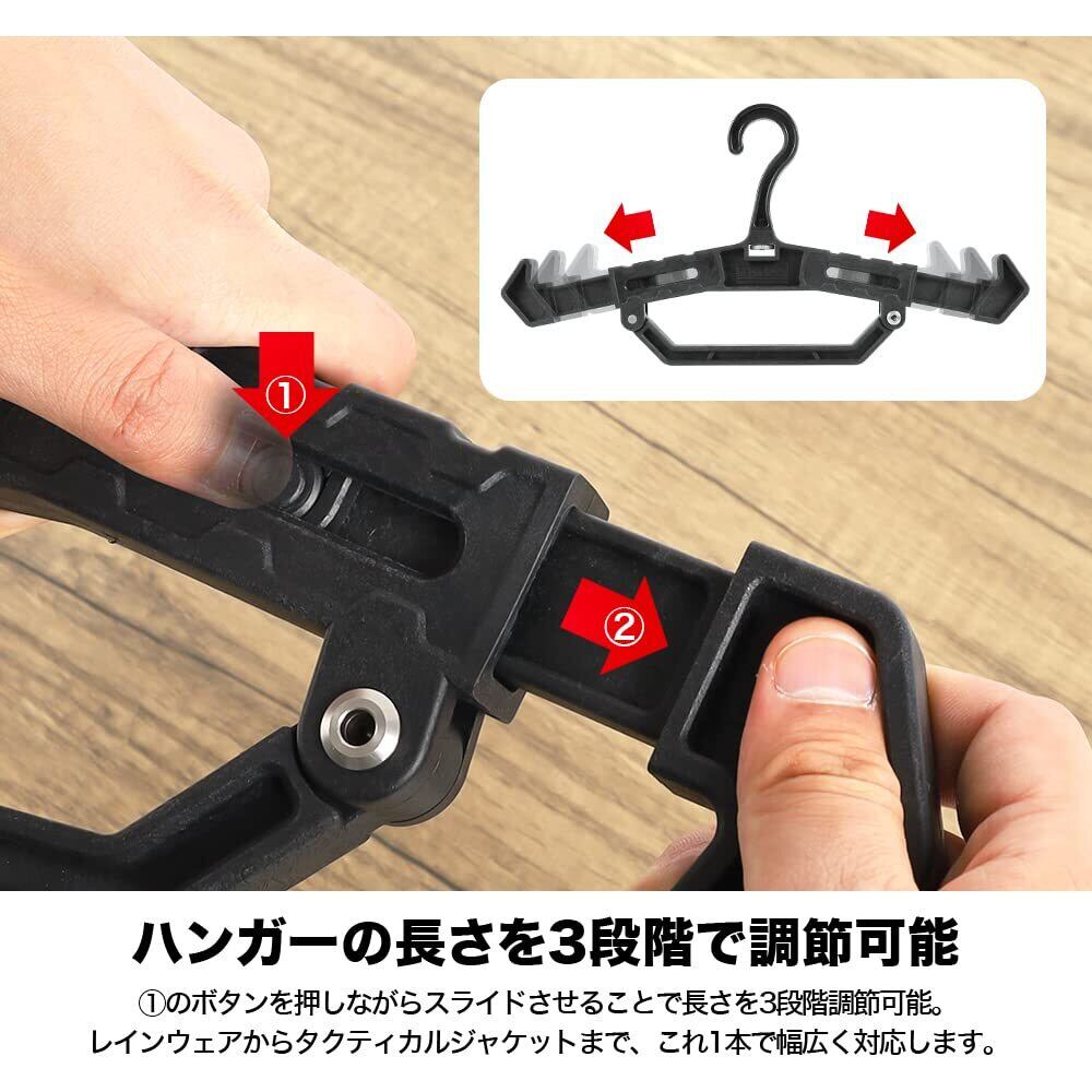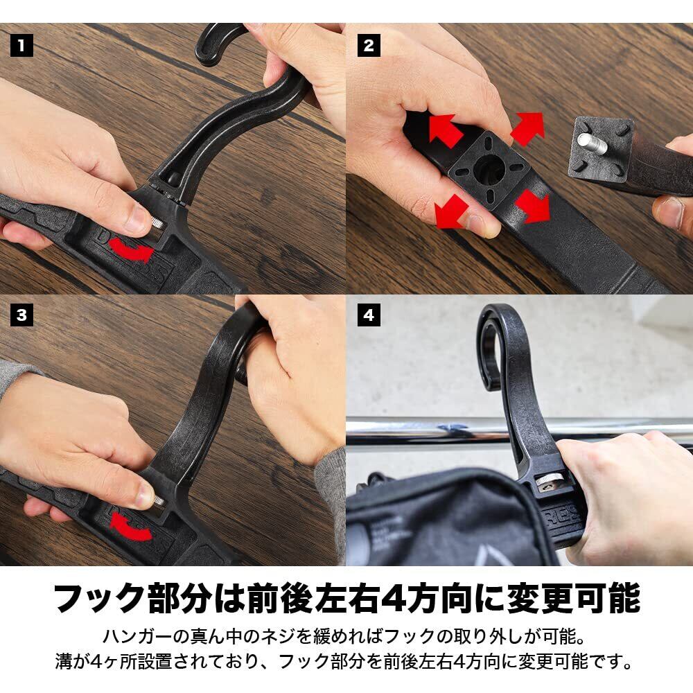 ●可変ギミック搭載であらゆる用途に使用可能!フックの向きを90°回転することが でき、メタルラックなどにかけるこ ともできます。肩部の調整部分の長さ変更をする ことで、吊るす物や用途に合わせた 使い方が可能。