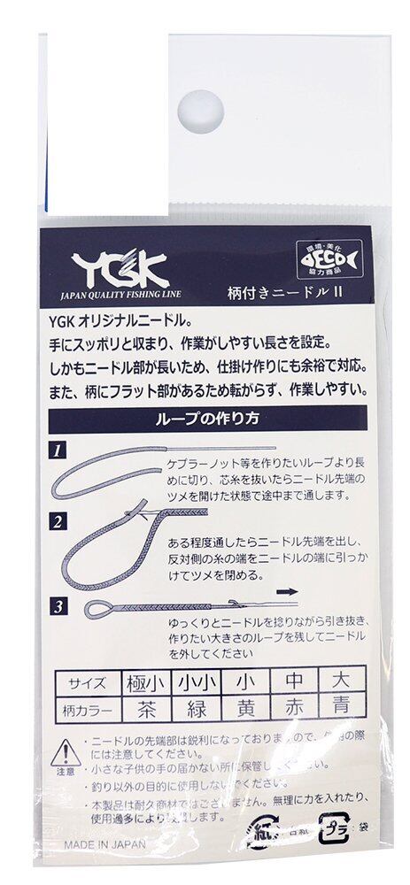 天然木製の柄をニードルに付けました。手にスッポリと収まり、作業がしやすい長さを設定。しかもニードル部が長い為、長い仕掛け作りにも余裕で対応します。 また、柄にフラット部があるため、作業中に転がりません。YGKよつあみならではのこだわり仕様です。