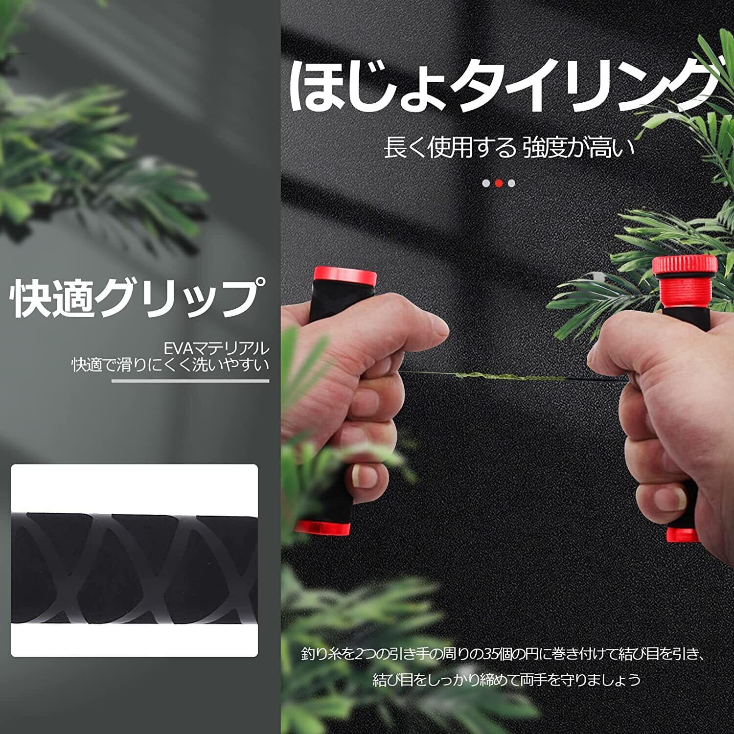 丈夫な釣り糸。滑り止めのデザイン。2つのサイズでニーズを満たします。