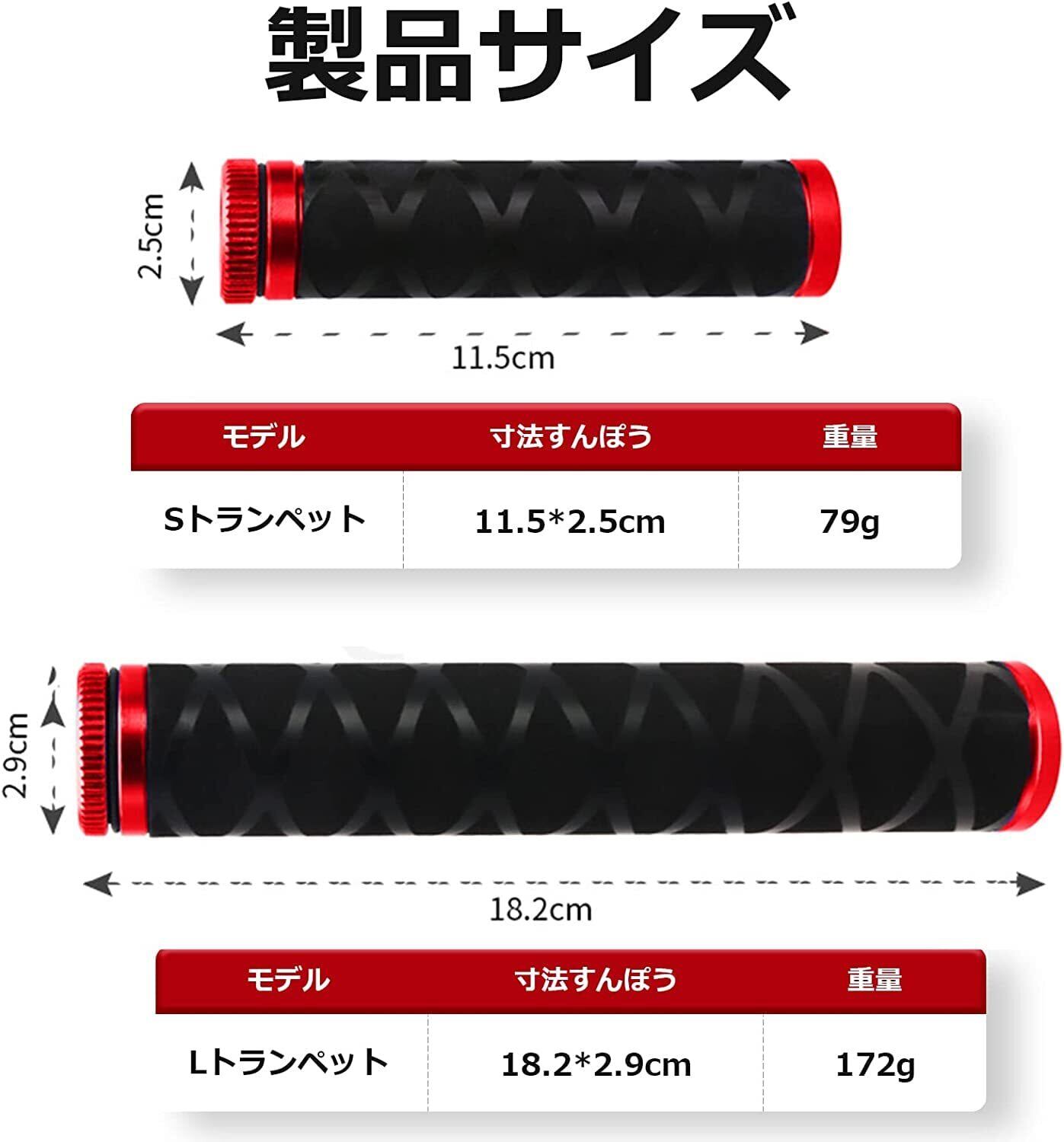 サイズ:S:11.5cm*2.5cm 重量:79g L:18.2cm*2.9cm 重量:172g