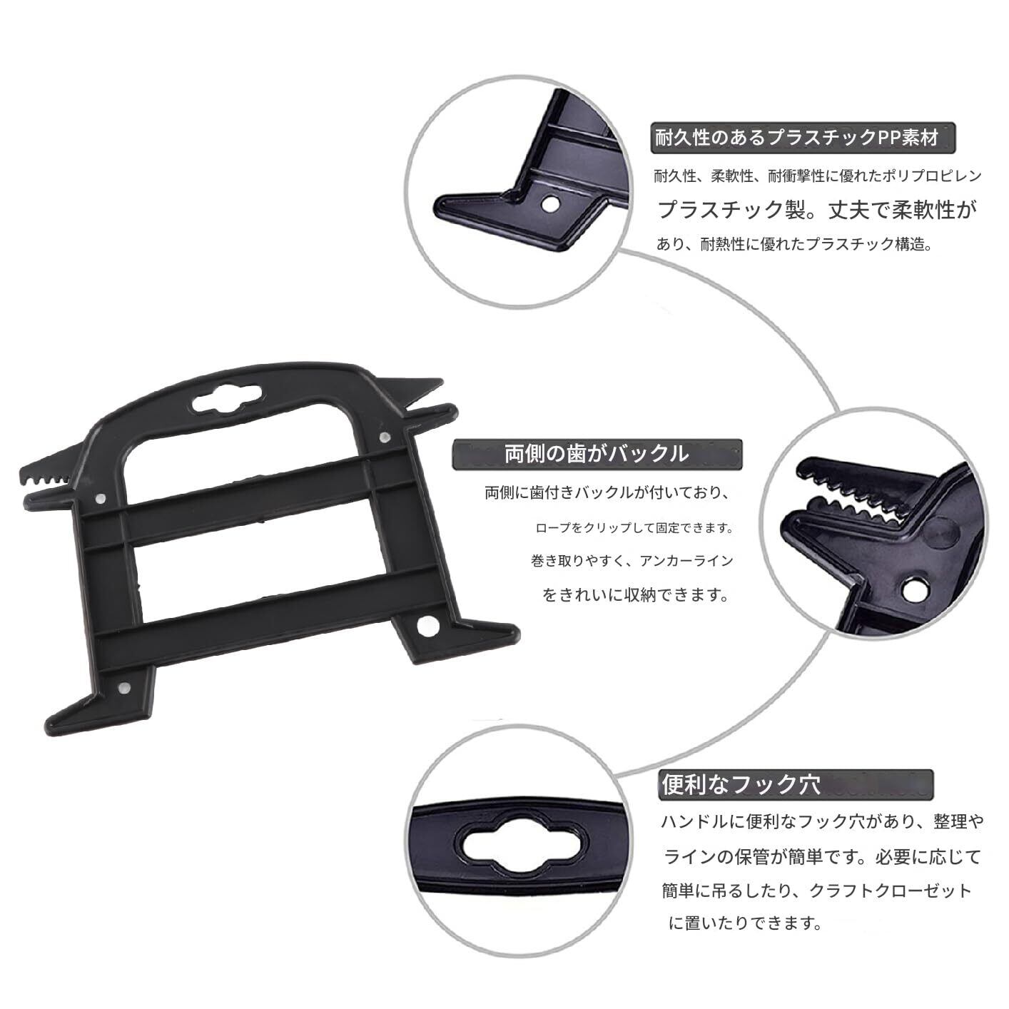 【商品仕様】素材:プラスチック;カラー:ブラック;サイズ:約19 x 14.5 cm / 7.5x5.7インチ;重量:約195 g;パッケージリスト:5xパラコードワインダー。