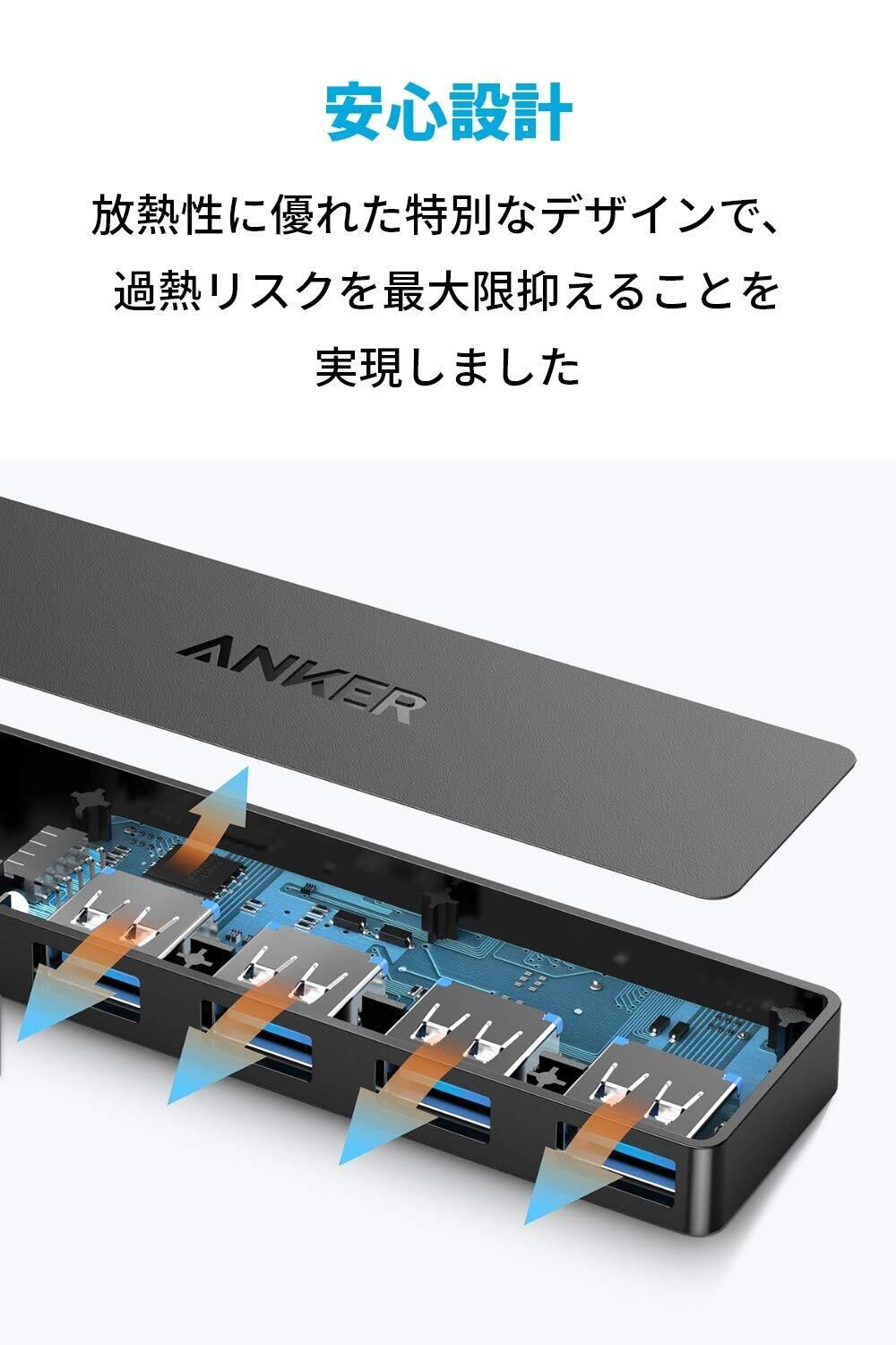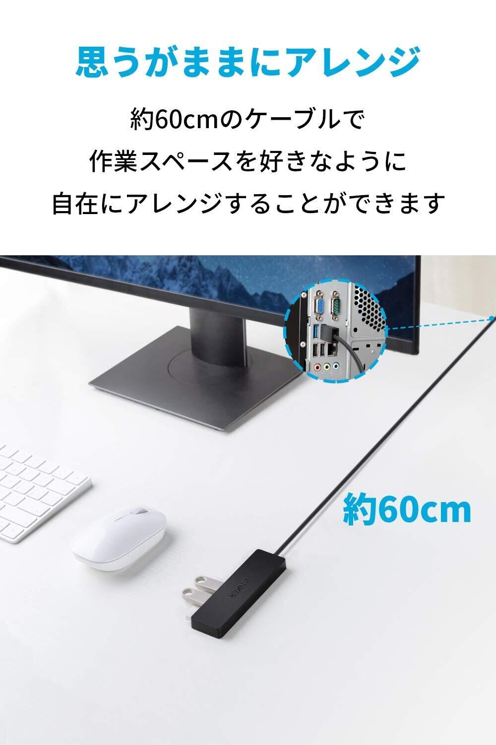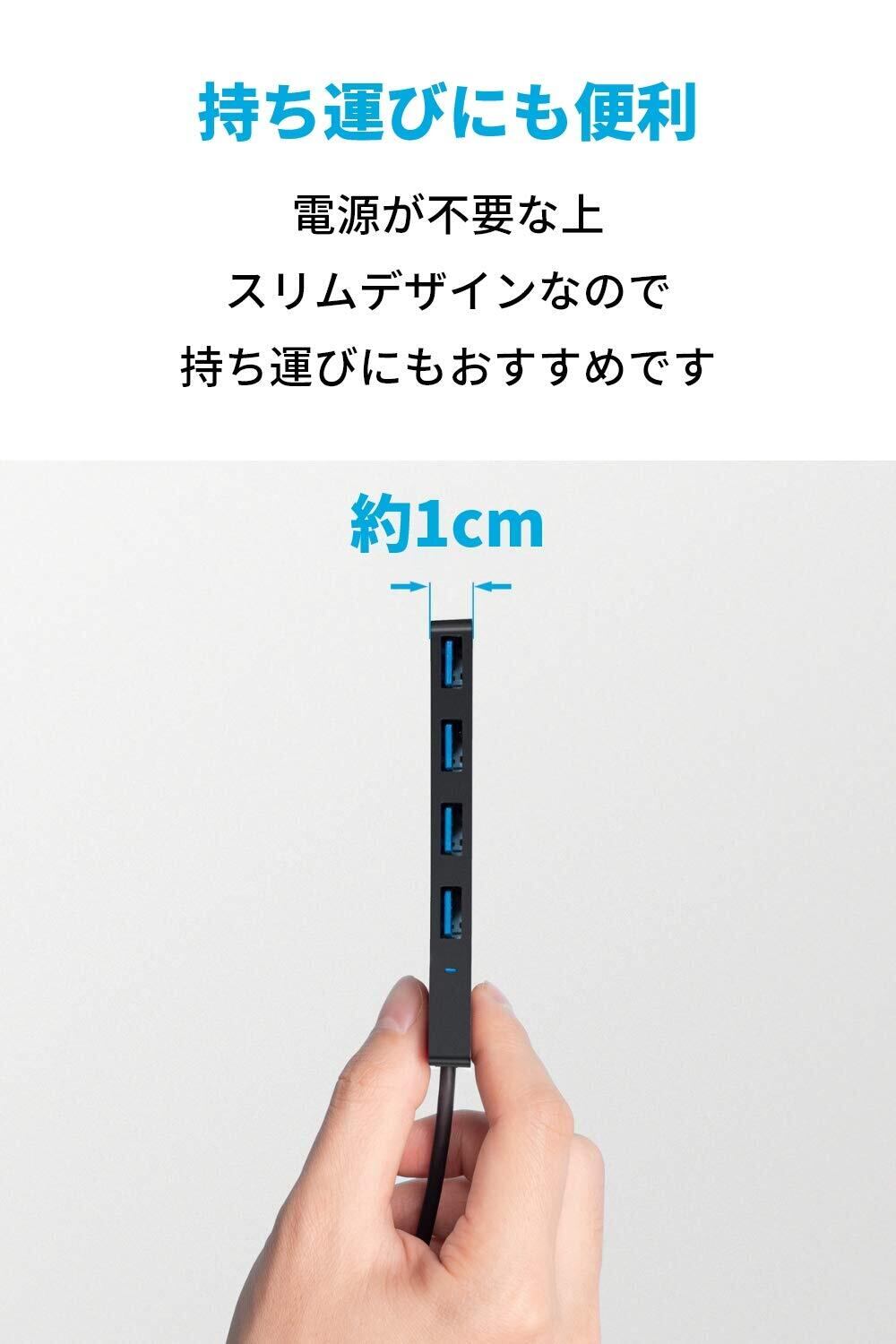 Anker USB3.0 ウルトラスリム 4ポートハブ USB ハブ 60cm ケーブル 5Gbps高速転送 バスパワー 軽量 コンパクト MacBook/iMac/Surface Pro 等 ノートPC 他対応 USBハブ テレワーク リモート 在宅勤務