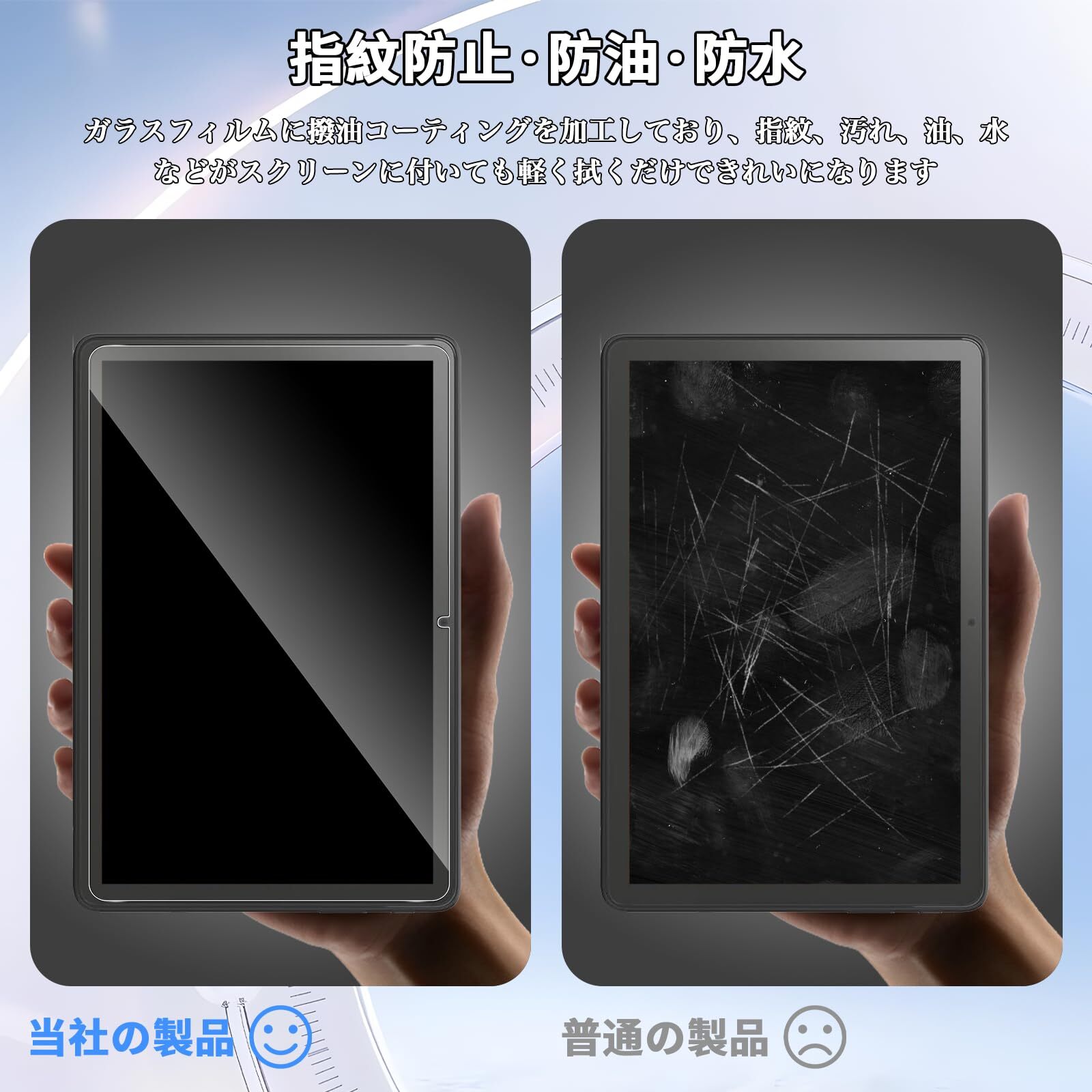 【指紋防止·撥水撥油】指紋がつきにくく、油分や水分の重い汚れがついても、拭くだけで拭き取れます。画面に多くの痕跡を残すことなく、見た目に影響を与え、いつでも高精細な映像を楽しむことができます。