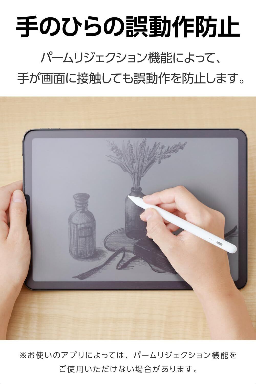 ■手のひらが画面に接触した状態でも、ペンを認識して誤動作を防止するパームリジェクション機能を搭載しています。