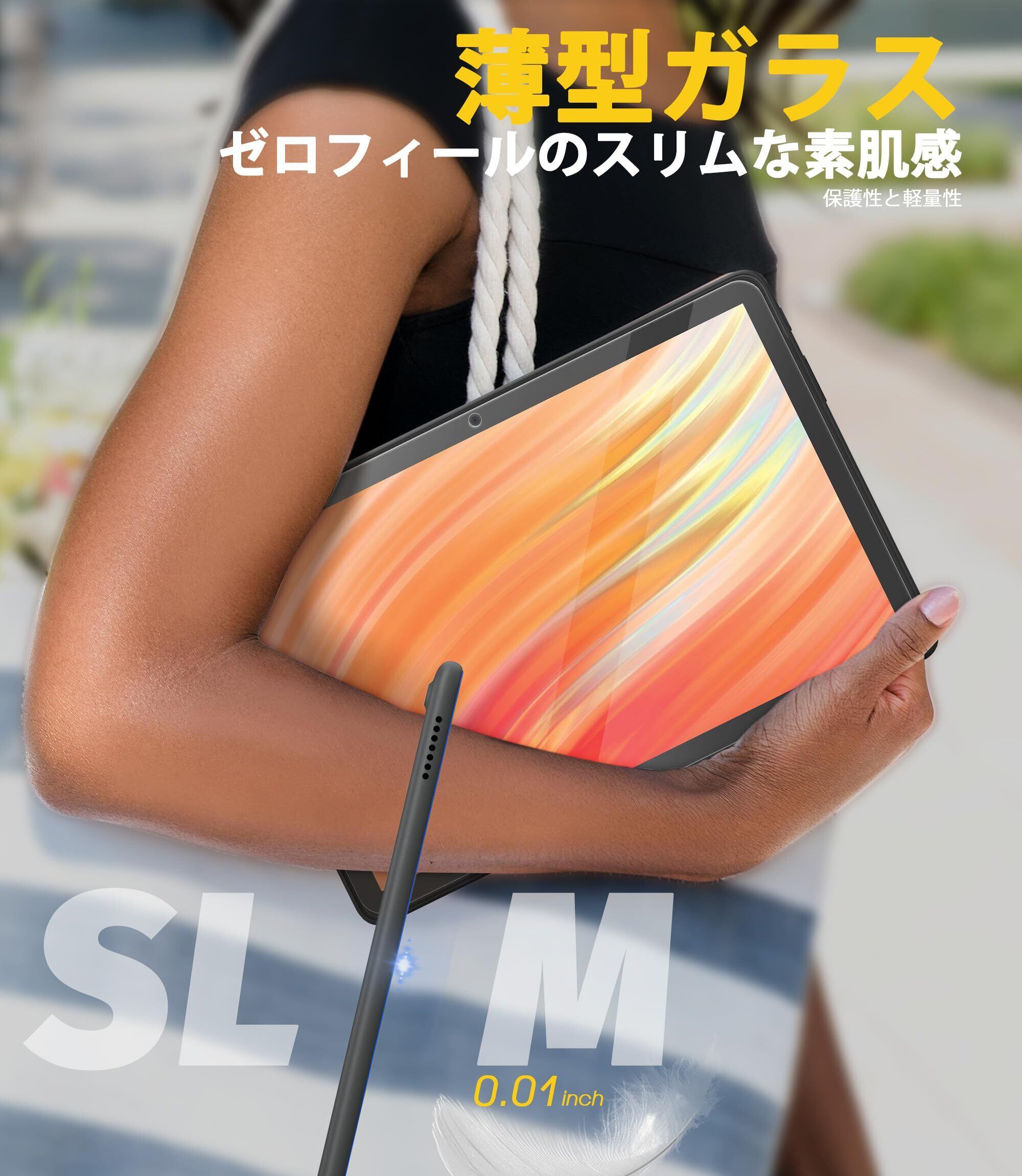 【タッチ感】極薄デザイン、かつフィルム表面に高耐久撥油コーティングが施されたことで、指紋や汚れが付きにくくになります。画面上の操作も違和感なくスムーズに行えます。保護フィルム自体の存在感が低いので、HD 10 2023が快適で滑らかな操作できます。