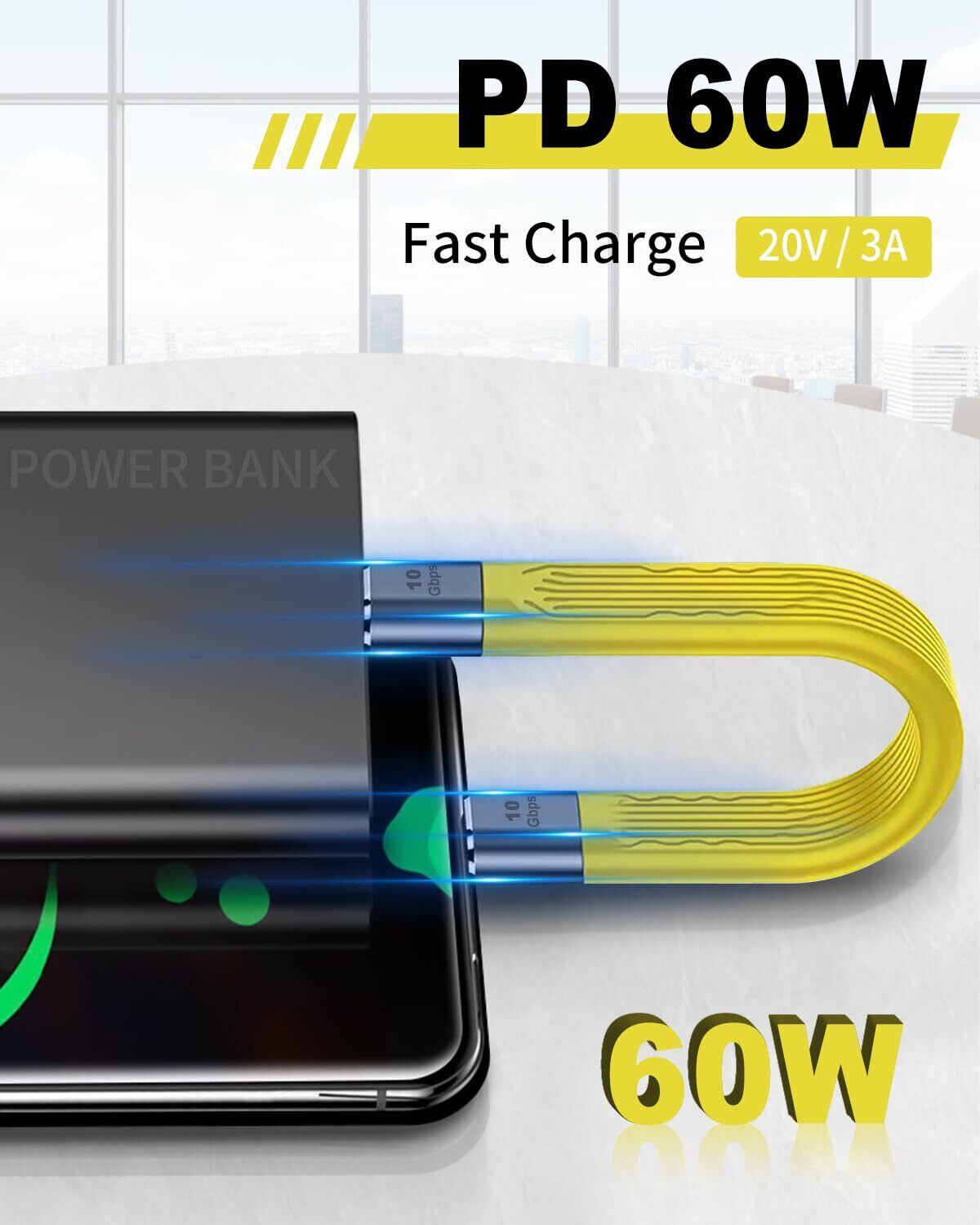 E-マークチップを内蔵した60W PD急速充電対応USB C-USBケーブルは、最大60Wの光速充電出力をサポートし、ほとんどのタイプCデバイスと完全に互換性があります。このケーブルはThunderbolt3.0に対応していませんのでご注意ください。