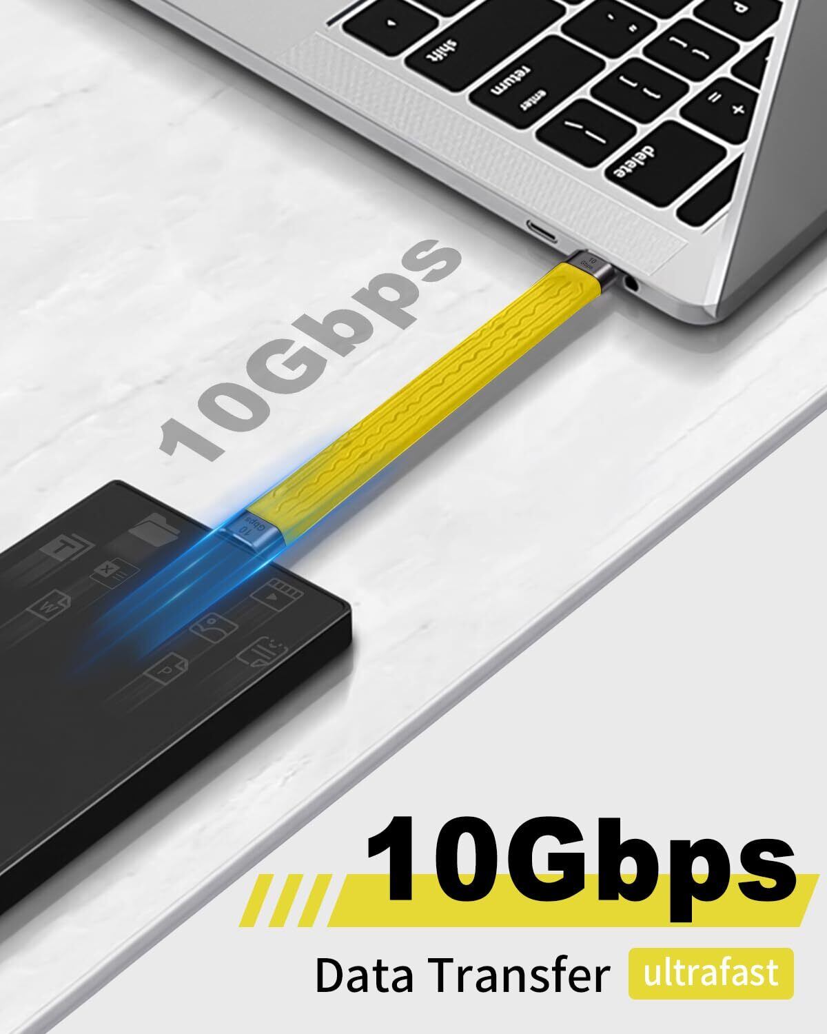 USB Type-C 短い充電ケーブルは、10Gbps のデータ同期転送をサポートし、高速で大容量のデータ転送機能を可能にします。この種のケーブルを使用すると、お気に入りの映画、音楽、そして完全なテレビ番組などを数秒で転送できます。USB Type-C ポートを備えたほぼすべての USB タイプ C デバイスに対応しており、Type-C ハードディスク、ポータブル SSD、MacBook、Android デバイス、パーソナルコンピュータ、ラップトップ、タブレット、テレビ、モニター、スマートフォンなどがサポートされています。この多機能な接続オプションにより、USB Type-C ポートを備えたさまざまなデバイス間でシームレスなデータ転送が可能となります。