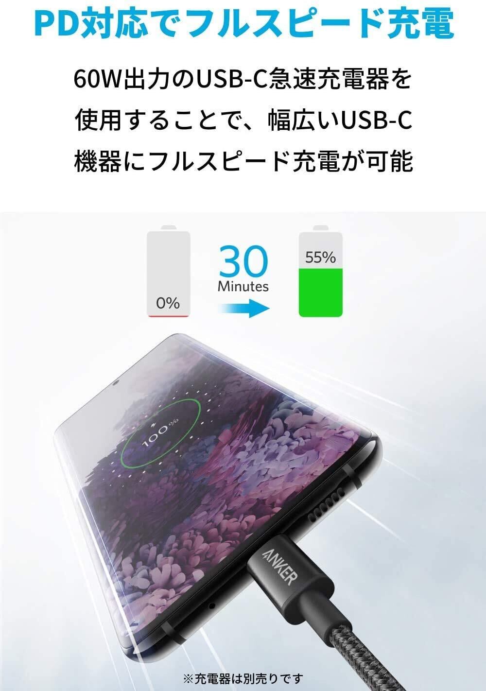 【2本セット】Anker 高耐久ナイロン USB-C&USB-C 2.0 ケーブル 【USB PD対応/高耐久】 60W対応 iPhone 16 MacBook Pro iPad Pro Air Galaxy等対応 (1.8m ブラック)