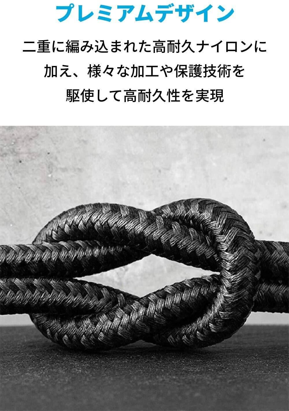 高い耐久性:Anker 高耐久ナイロン USB-C&USB-C 2.0 ケーブルは、12,000回以上の折り曲げにも耐える高い耐久性を実現しました。