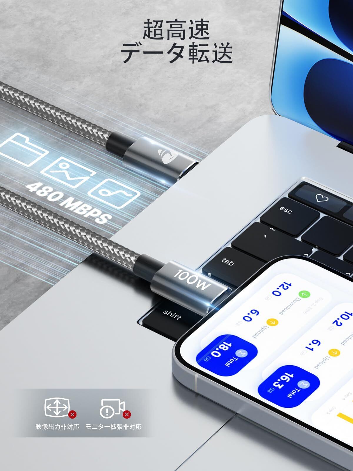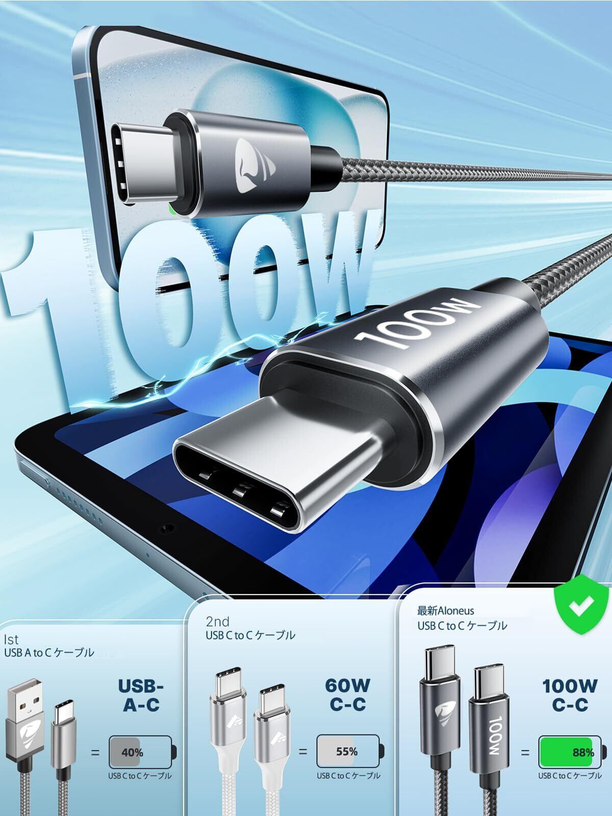 【最大100Wの超高速充電対応】: Aioneus 充電ケーブル タイプc はUSB PD(Power-Delivery)技術に対応し、最大100W (20V×5A)まで安全かつ安定して出力できます。PD充電を実現するために、デバイスとアダプタはPD機能をサポートする必要があります。100W 87W 61W 45W 30W 18Wの電力供給PD急速充電をサポートします。 【ビデオ出力をサポートしていません。】