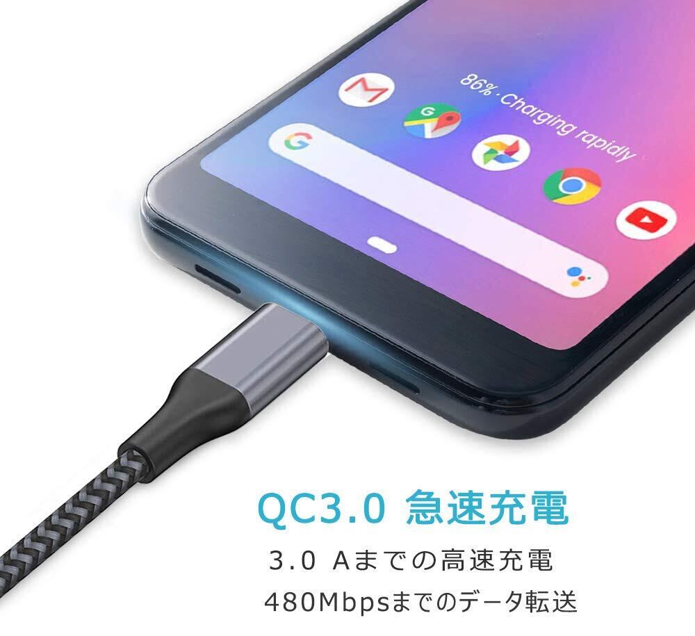 【高速充電・データ転送充電ケーブル タイプc】10V/3A(Quick Charge 3.0)の急速充電と最大480Mbpsの高速同期を実現出来ます。cタイプ ケーブル銅製心線を採用し、電気抵抗が低く、 充電速度がより速くなり。▲急速充電達成する:接続されたデバイスと充電器はQC3.0高速充電をサポートします。