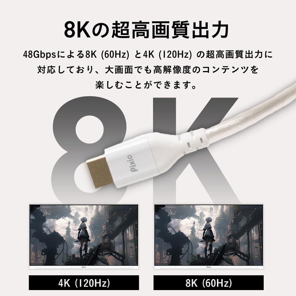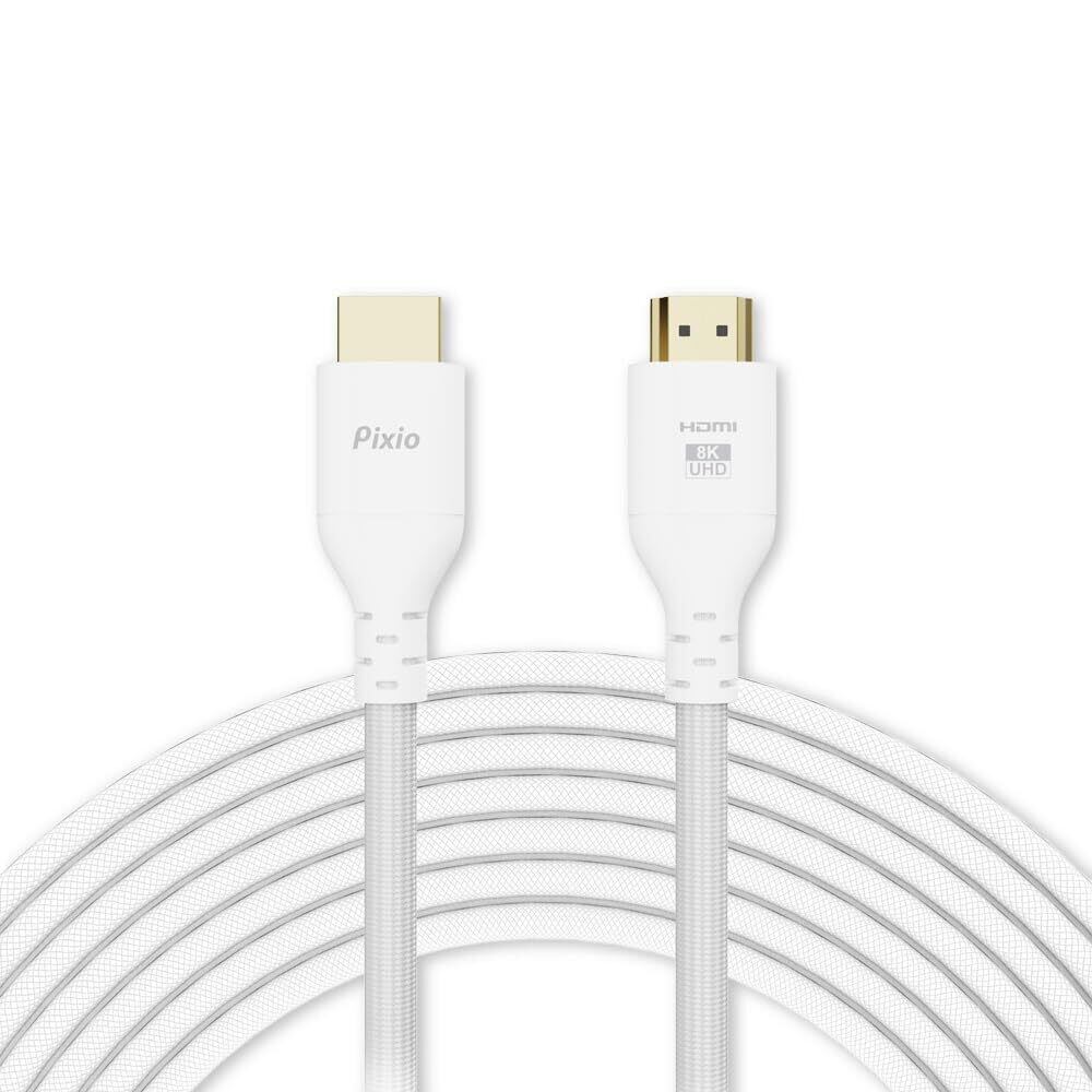 Pixio ウルトラハイスピード HDMIケーブル 2m 白 PXH212BW HDMI2.1B 8K/60Hz 4K/120Hz HDR対応 ナイロンメッシュ ホワイト シルバー