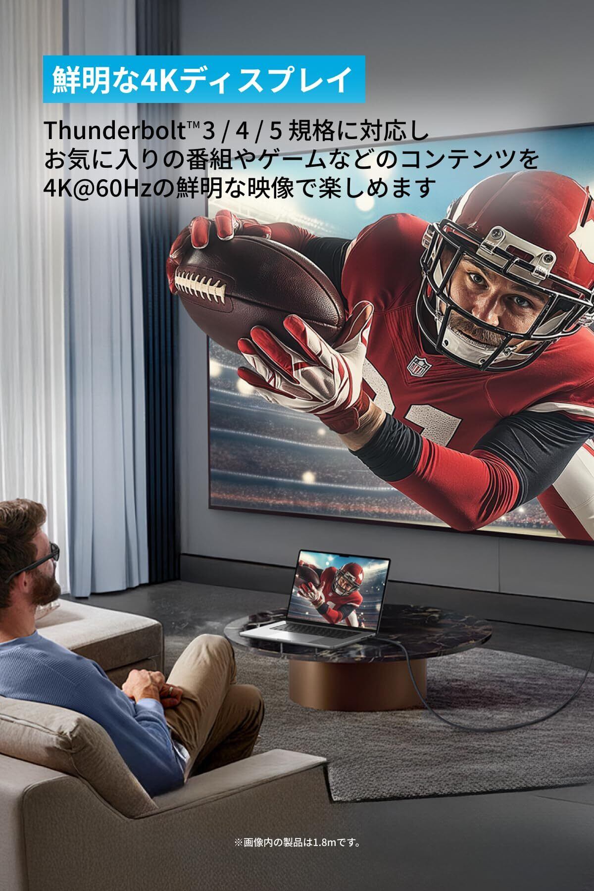 急速充電から映像出力までこれ1本:お使いの機器をUSB-Cポートで充電しながら4Kの高画質な映像をお楽しみいただけます。