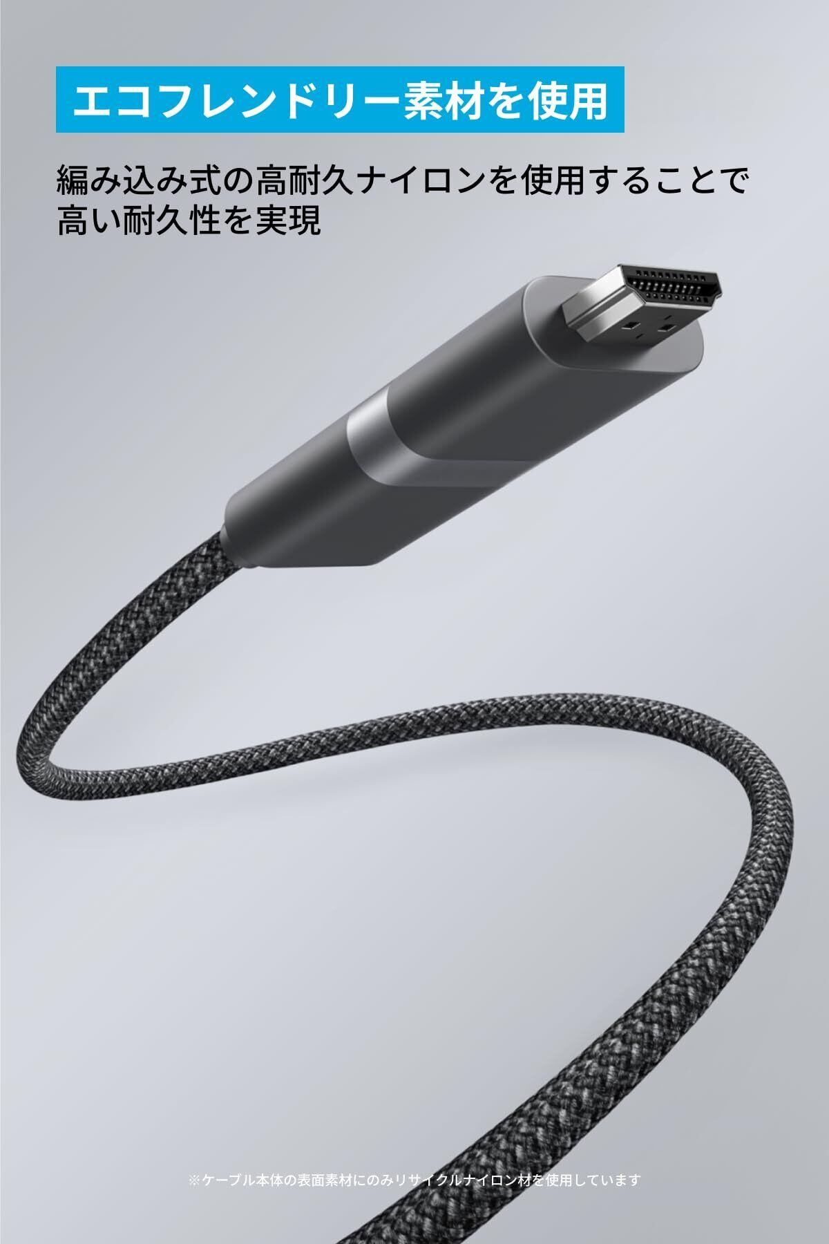 Anker Nano USB-C & HDMI ケーブル (4K, 高耐久ナイロン, 140W) 1.8m 4K 60Hz出力, 140W PDパススルー充電, 2in1 iPhone 16 / 15 Galaxy iPad Pro MacBook Pro/Air 各種対応