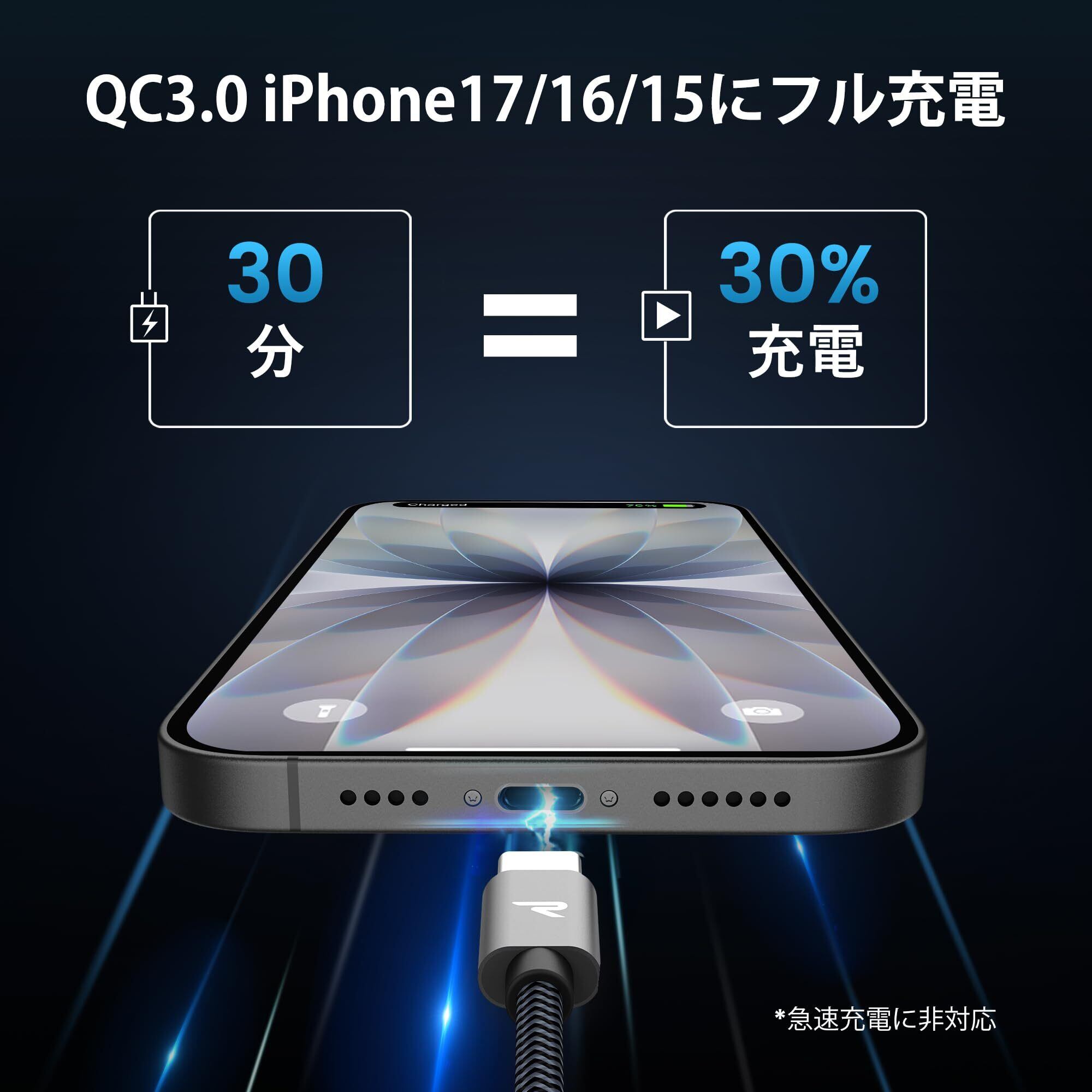 【快適なQC3.0急速充電】当社のUSB CケーブルはQuick Charge 3.0に対応し、3.6V〜20V/3Aの高速充電が可能です。お使いのスマートフォンやタブレットなどのデバイスを短時間でフル充電し、貴重な時間を節約できます。急いでいる時でも便利で利用できます。️️iPhone 17/16/15シリーズのスマートフォンを充電する場合、充電電力は12Wで、急速充電には対応していません。
