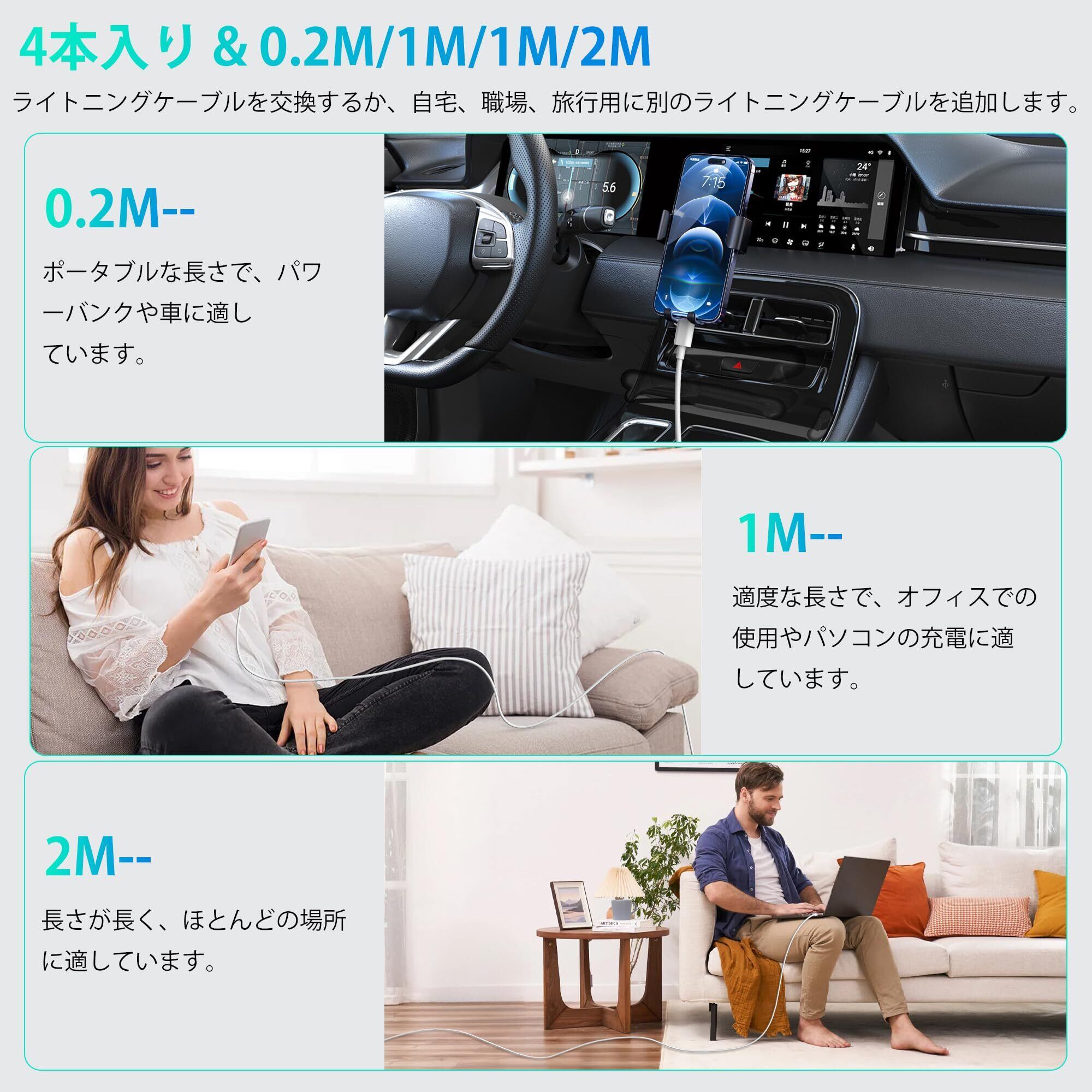 セット内容:BSTOEM USBライトニングケーブル【0.2M+1M+1M+2M 】4本セットです。さまざまな場面で使用できます。自宅、仕事、旅行、オフィス、自習室、喫茶店や車内等多くの場所でご利用いただけます。