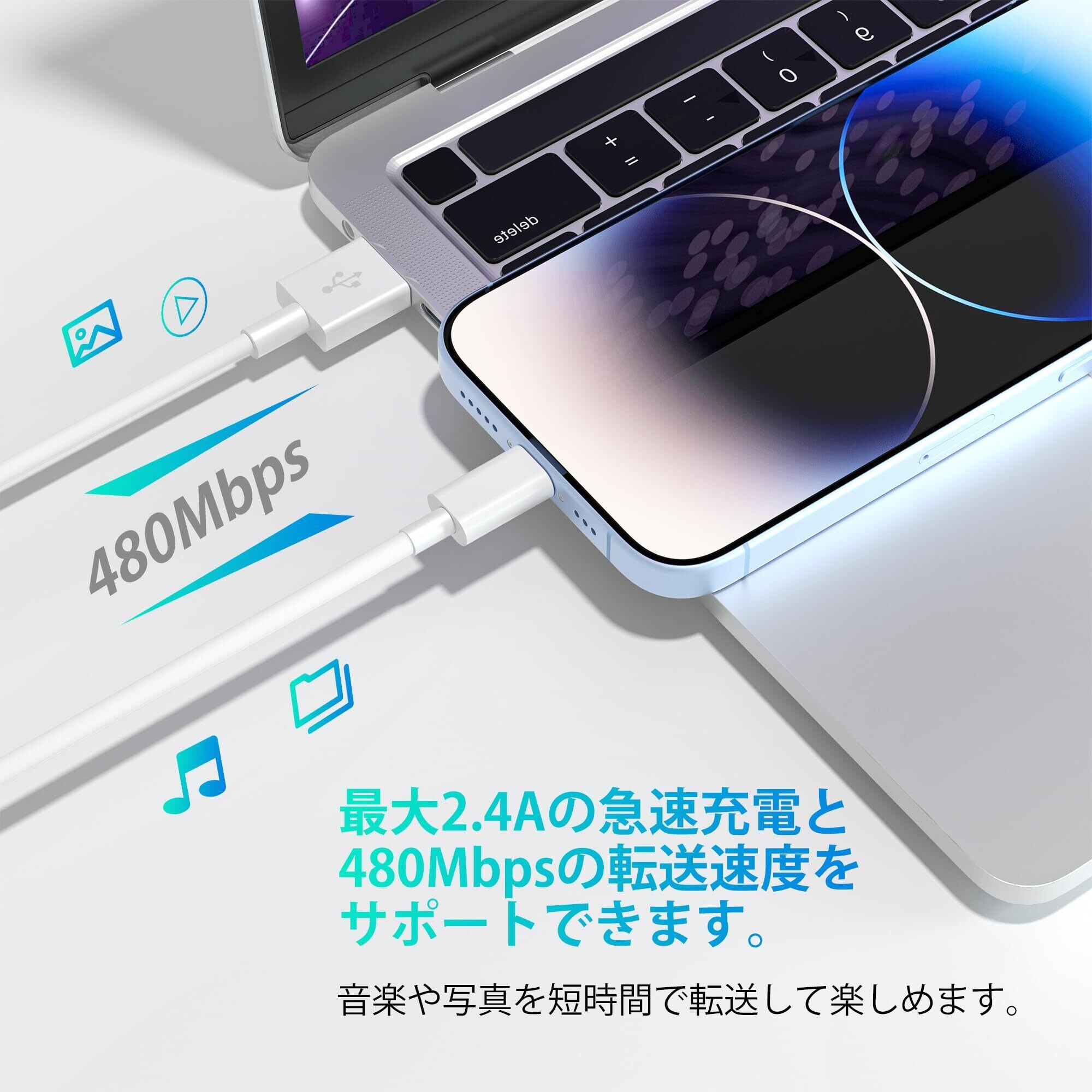 高速充電とデータ転送: BSTOEM iPhone充電ケーブルは最新のMFIライトニングポートを採用しており、高速電力供給用に特別に設計されており、携帯電話を2.4Aで高速充電できます。 通常のライトニングケーブルよりも早く充電できます。 最大480Mbpsのデータ転送速度もサポートしており、iPhoneとPCの間で音楽、写真、ファイルを数秒で簡単に転送できます。