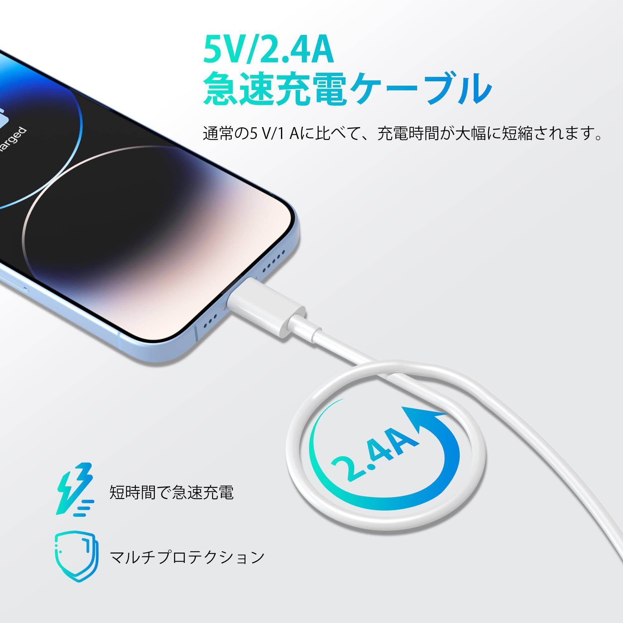 安全重視のこだわり設計:高品質な銅線を採用してケーブル内部の電気抵抗が低く、充電時間を短縮してくれます。2.4Aの高出力を流せしかも過充電と発熱などを防ぎ、安定性の高い急速充電と大切な機器の損傷防止を実現します。