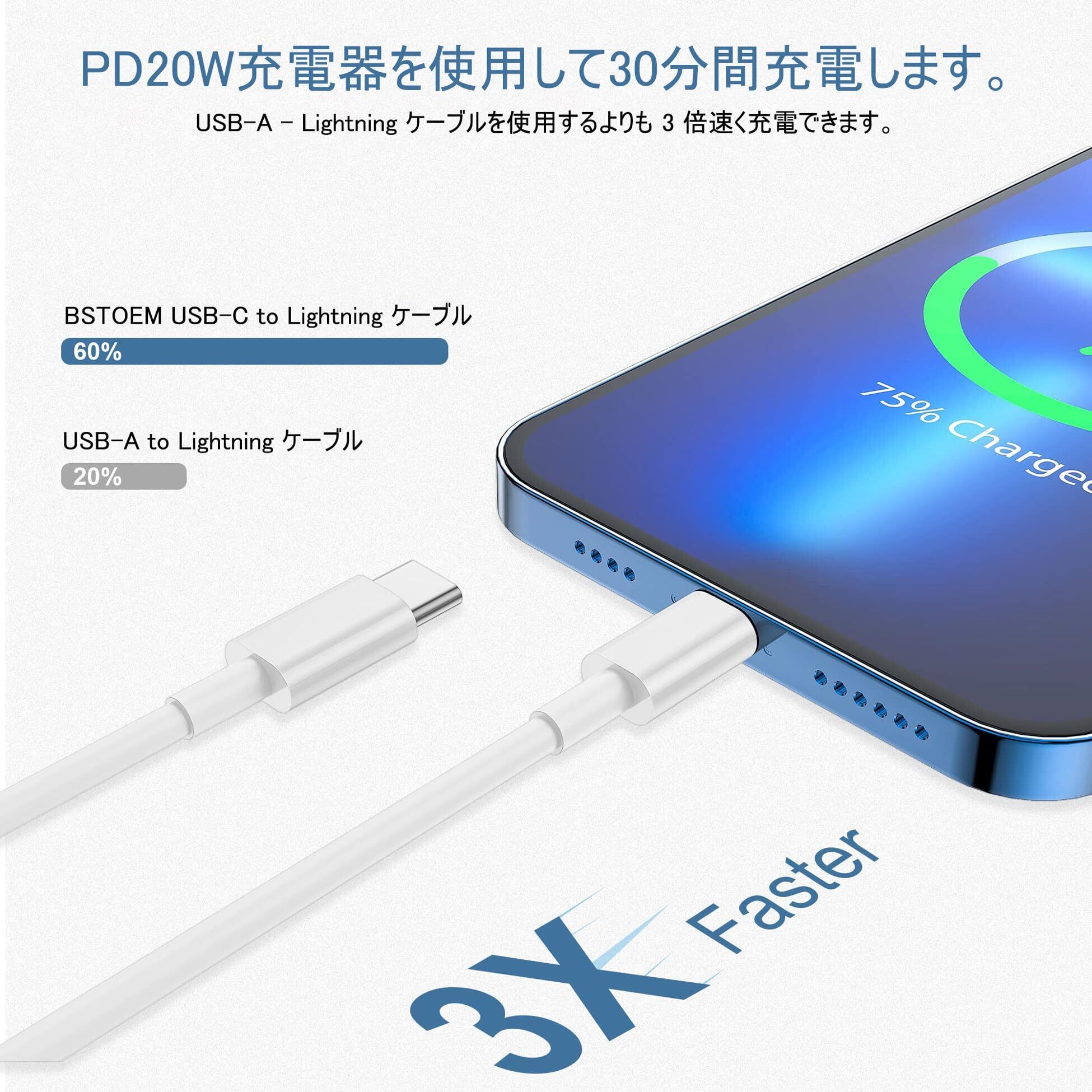 セット内容:BSTOEM USB C-ライトニングケーブル【1M+1M+1M】3本セットです。さまざまな場面で使用できます。自宅、仕事、旅行、オフィス、自習室、喫茶店や車内等多くの場所でご利用いただけます。