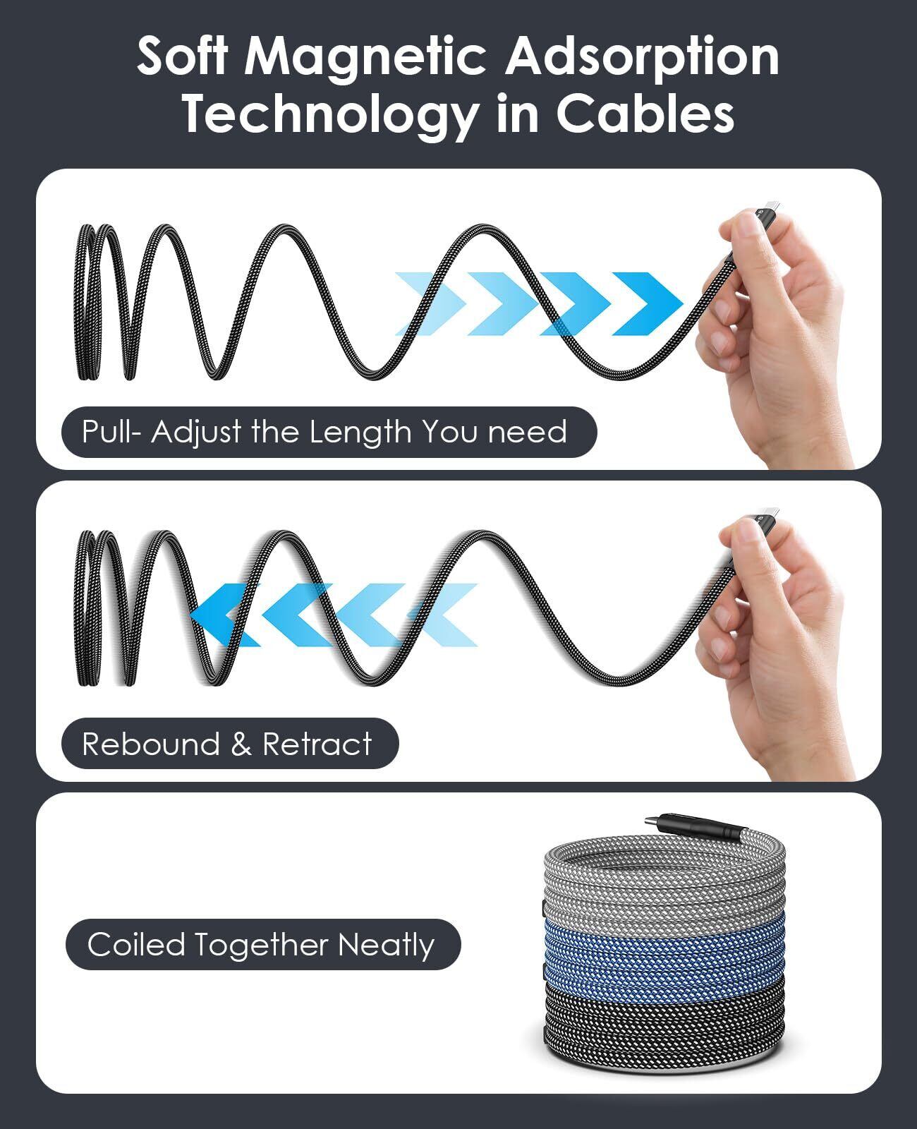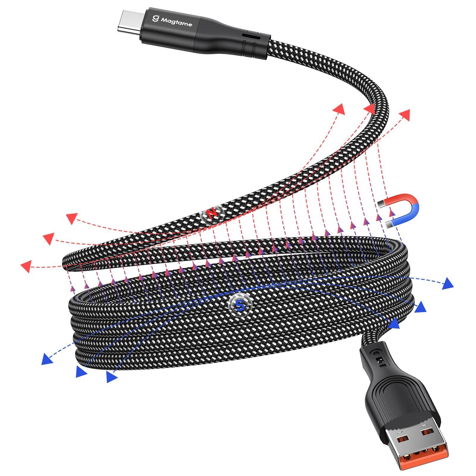 Magtame USB-Type Cケーブル 急速充電 QC3.0対応 USB-Cケーブル 磁力吸着絡まり防止 usbケーブルタイプc 金属製コネクタ 二重ナイロン 形状記憶 Xperia/Samsung/Switch Android usb a to c機器等対応 (1M-ブラック)