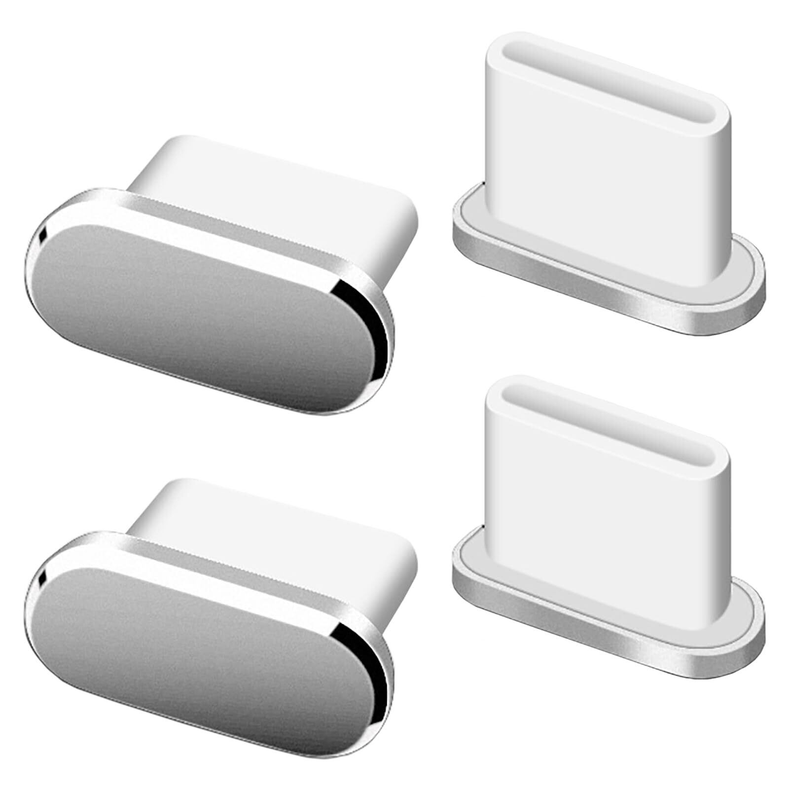 Type-C キャップ コネクタカバー 金属 ゴム 防砂 防塵保護カバー 充電口 コネクタ ダストプラグ スマートフォン用 4個入り (シルバー)