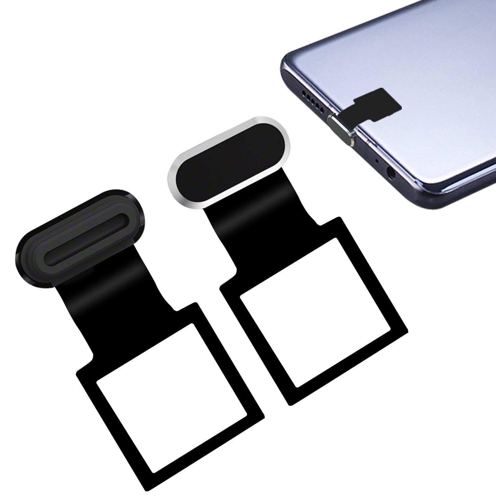 Type-C コネクタカバー 2個入り 携帯ケース用 保護キャップ 紛失防止 超耐久性 防水 防塵 アルミニウム合金製 充電コネクタカバー ブラックシリコン シルバー