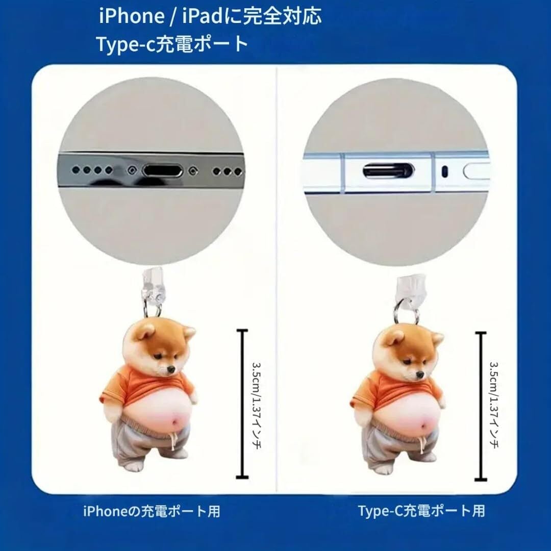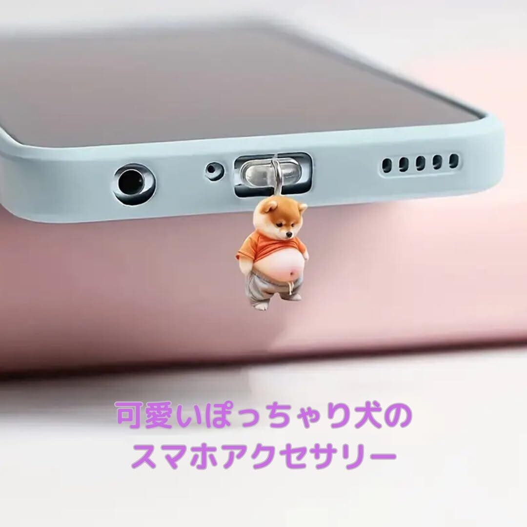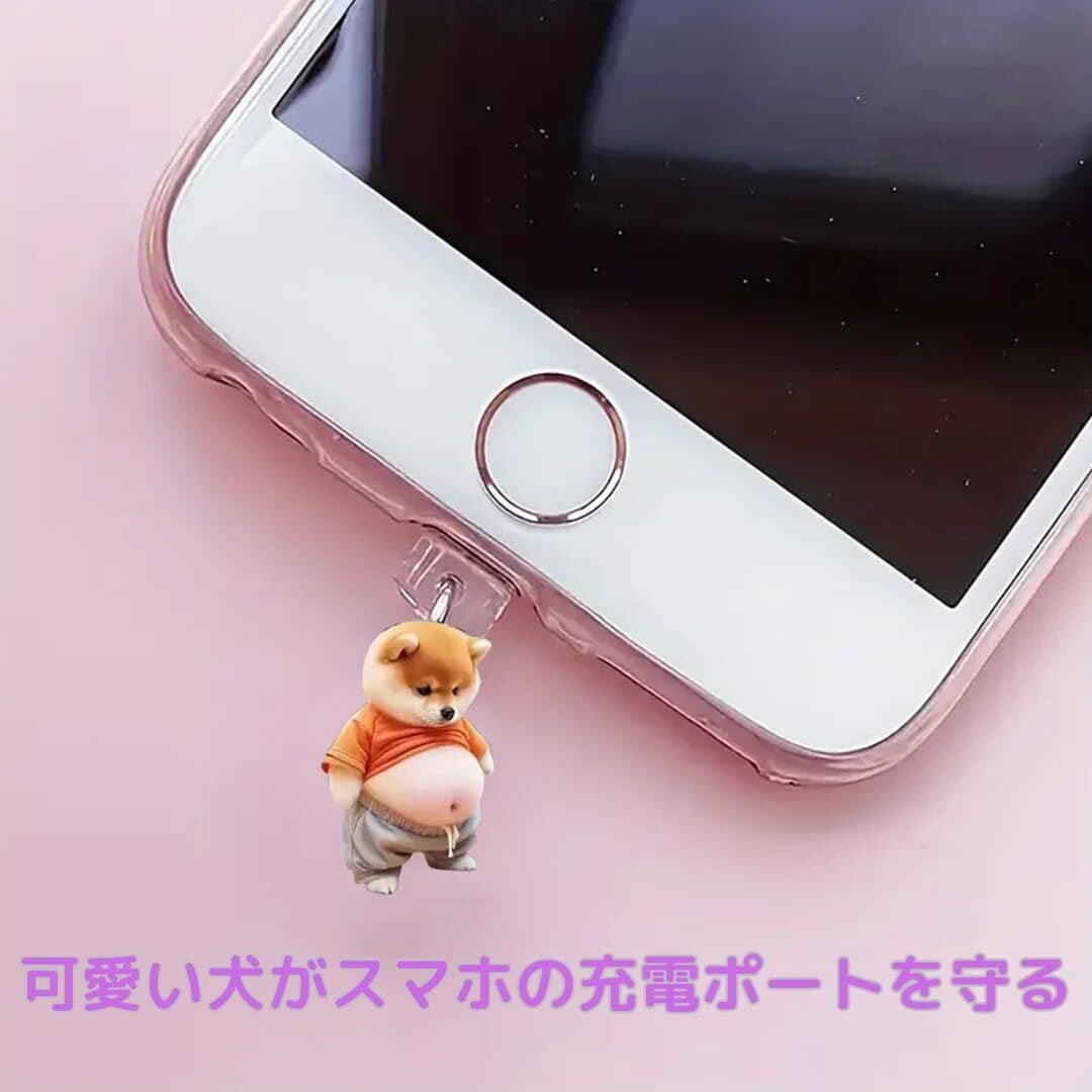【充電ポートを水やほこりから保護】スマートフォンを使用しない時に差し込むことで、充電口に埃や水が入るのを防ぎます。ぽっちゃり犬のデザインは、日常的な端末の保護に楽しさをプラスします。