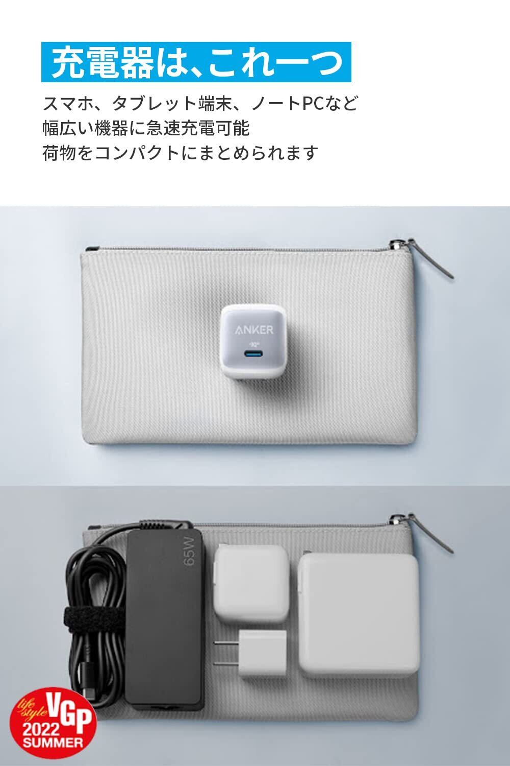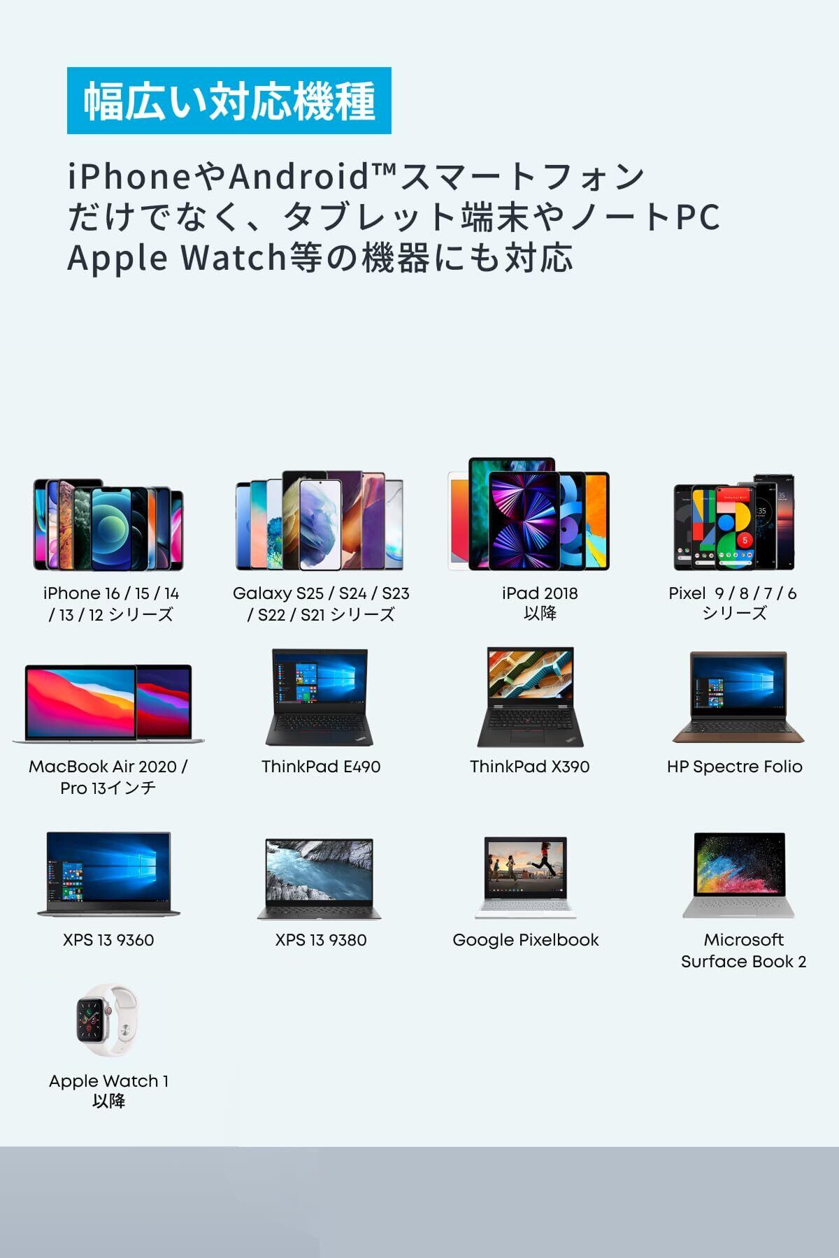 スマートフォン、ノートPC、タブレット端末の充電に、これ1つ:USB PowerDelivery(PD)対応の65W出力を備え、スマートフォンからノートPCまで幅広い機器に急速充電できます。利用機器毎に異なる充電器を持ち運ぶ必要はありません。