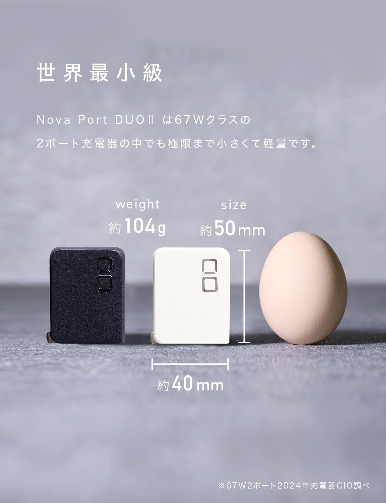 【新技術 NovaEngine搭載】次世代半導体のGaNチップをダブルで搭載するCIOの新技術NovaEngineを採用。エネルギーのロスを減らし、変換効率の向上を実現しました。充電器本体の発熱を抑制し、充電速度と安定性を追求した充電器です。