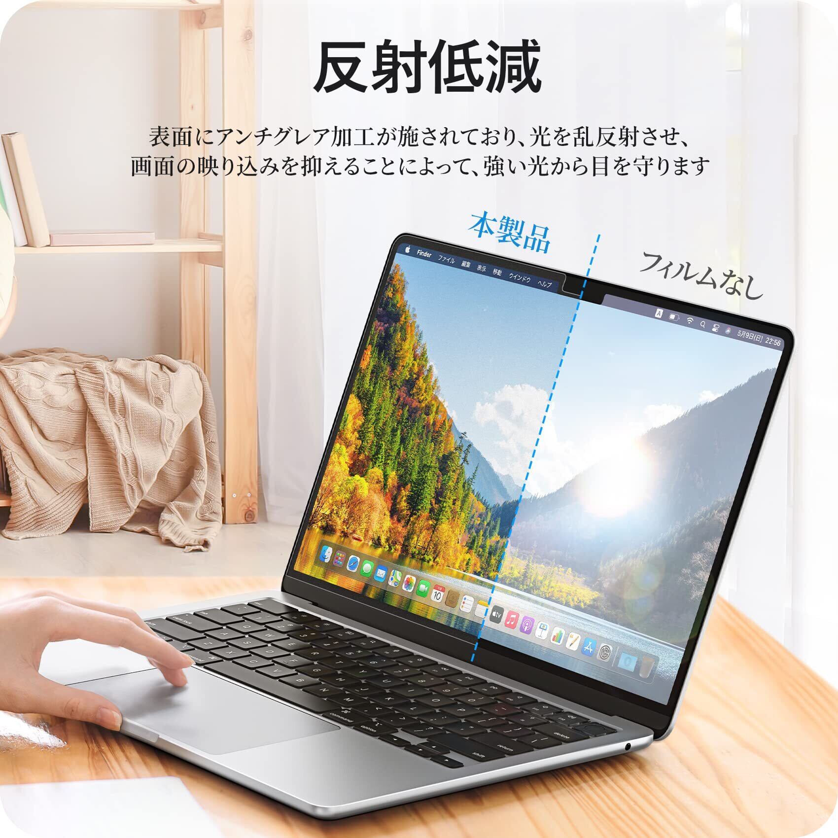 アンチグレア: 本製品はアンチグレア加工が施されており、蛍光灯や日差し等による反射を有効的に押さえ、どこでも画面をしっかりと見えます。