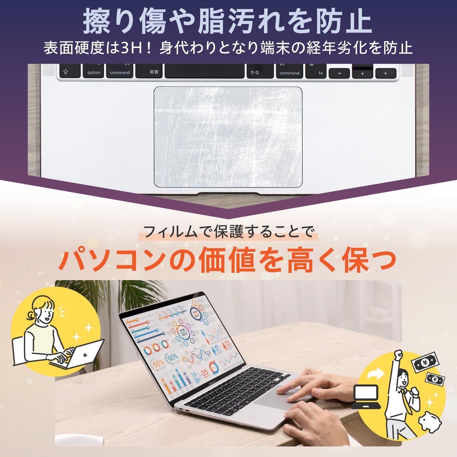 ▶▶▶【セット内容】:PET素材フィルム×1枚、付属品×1セット (拭き取りシート、クリーニングクロス、ホコリ除去シール)【超さらさらスベスベ】:ひとつ上の“超”さらさら加工で指滑り抜群。一般的なトラックパッド用フィルムは通常のさらさら加工ですが、「ピタっと!保護フィルムくん トラックパッド用」では、さらさら感を高めるため、より粒子の濃い超さらさら仕様に改良しています。