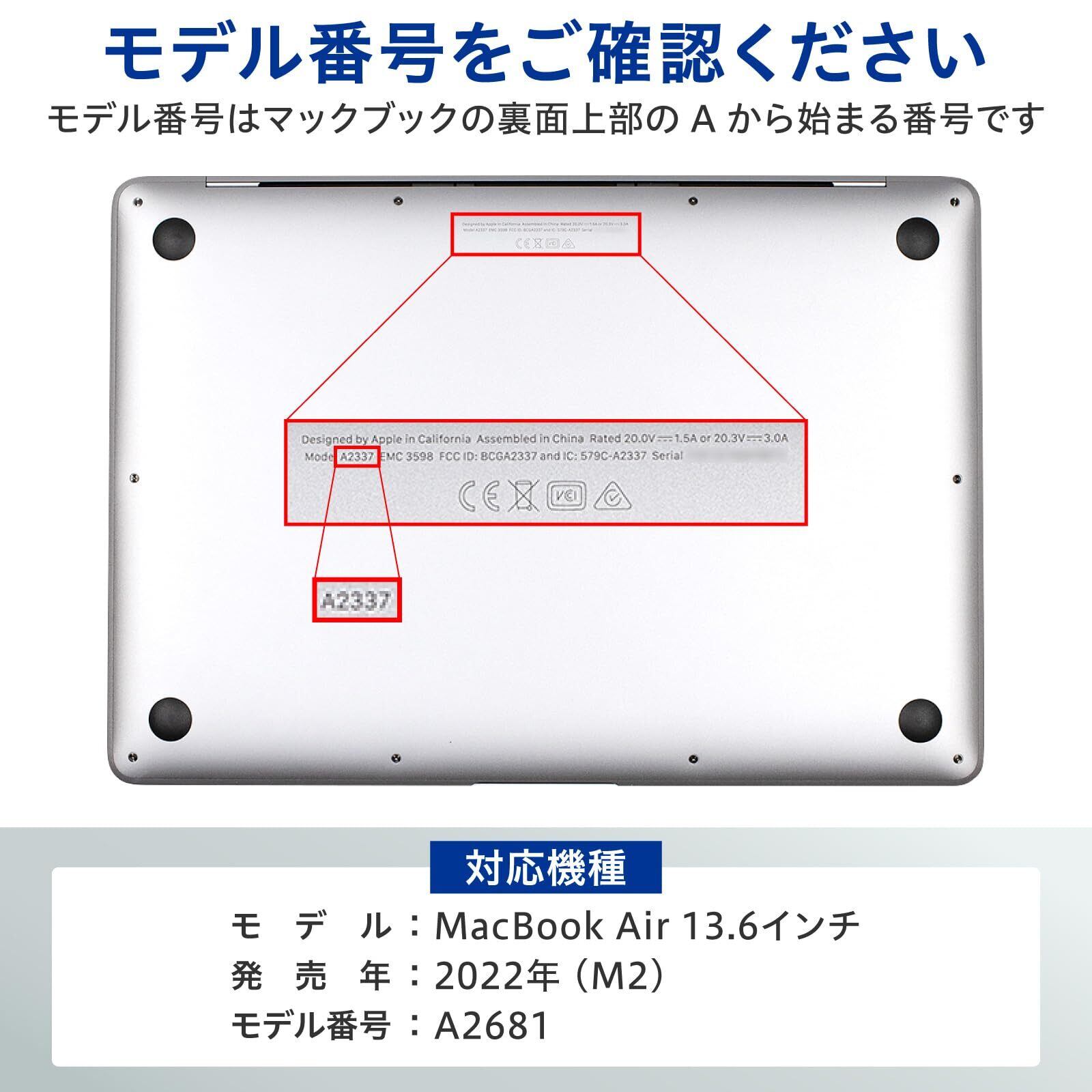 ※記載機種専用設計となっておりますので、モデル番号を必ずご確認ください。▶▶▶【対応機種】:MacBook Air 13.6インチ M4 (2025) / M3 (2024) / M2 (2022) 用 ▶▶▶【モデル番号】:A2681