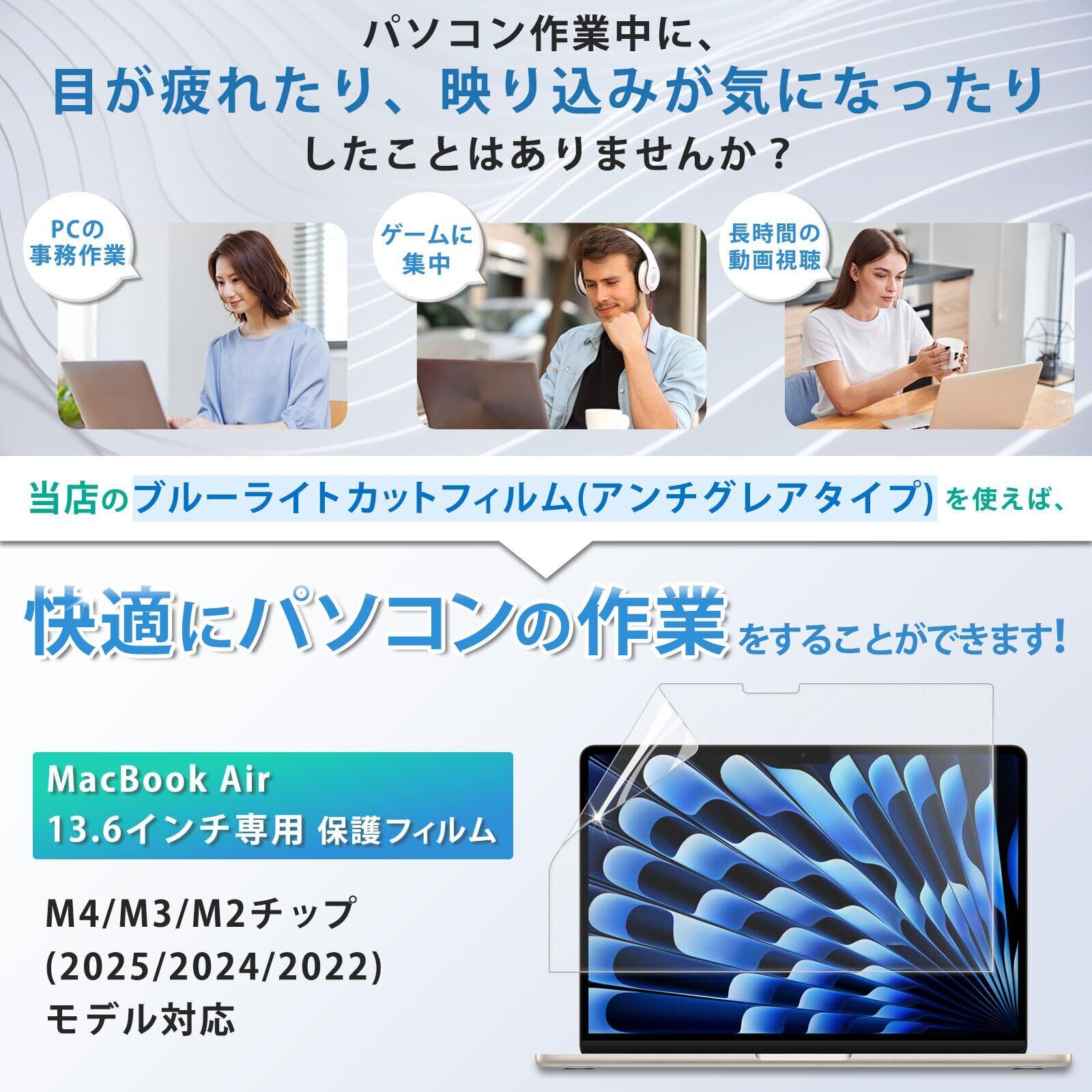 アンチグレア MacBook Air 13.6 2025 M4 /M3/M2 用 フィルム ブルーライトカット 保護フィルム マックブックエアー 13インチ 2024 2022 反射低減 指紋防止 抗菌