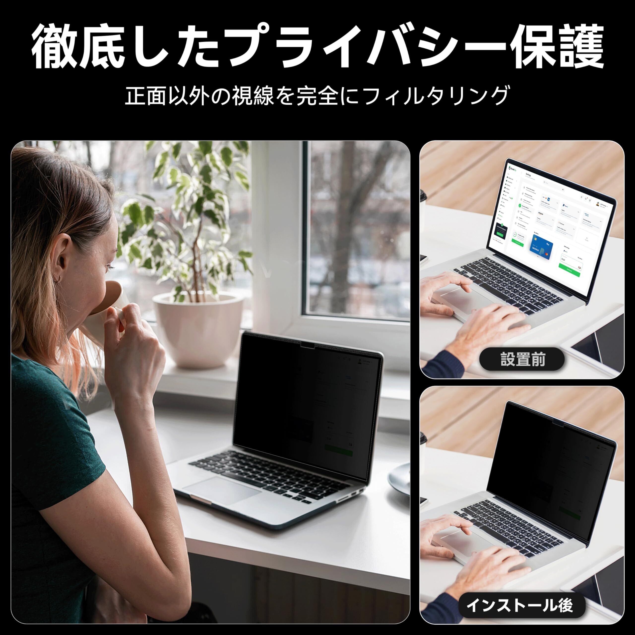 【幅広い用途】取り外し可能なデザインで、必要に応じて取り出して使用できるMacBook Airプライバシーフィルタープロテクター収納クリップが付属しており、画面のプライバシーを保護する必要があるさまざまな場面に最適です。オフィス、空港、カフェ、電車など。MacBook Air 13.6/13インチ(2022-2025年発売、M2 M3 M4チップ)と互換性があります - モデル: A2681 A3113 A3240