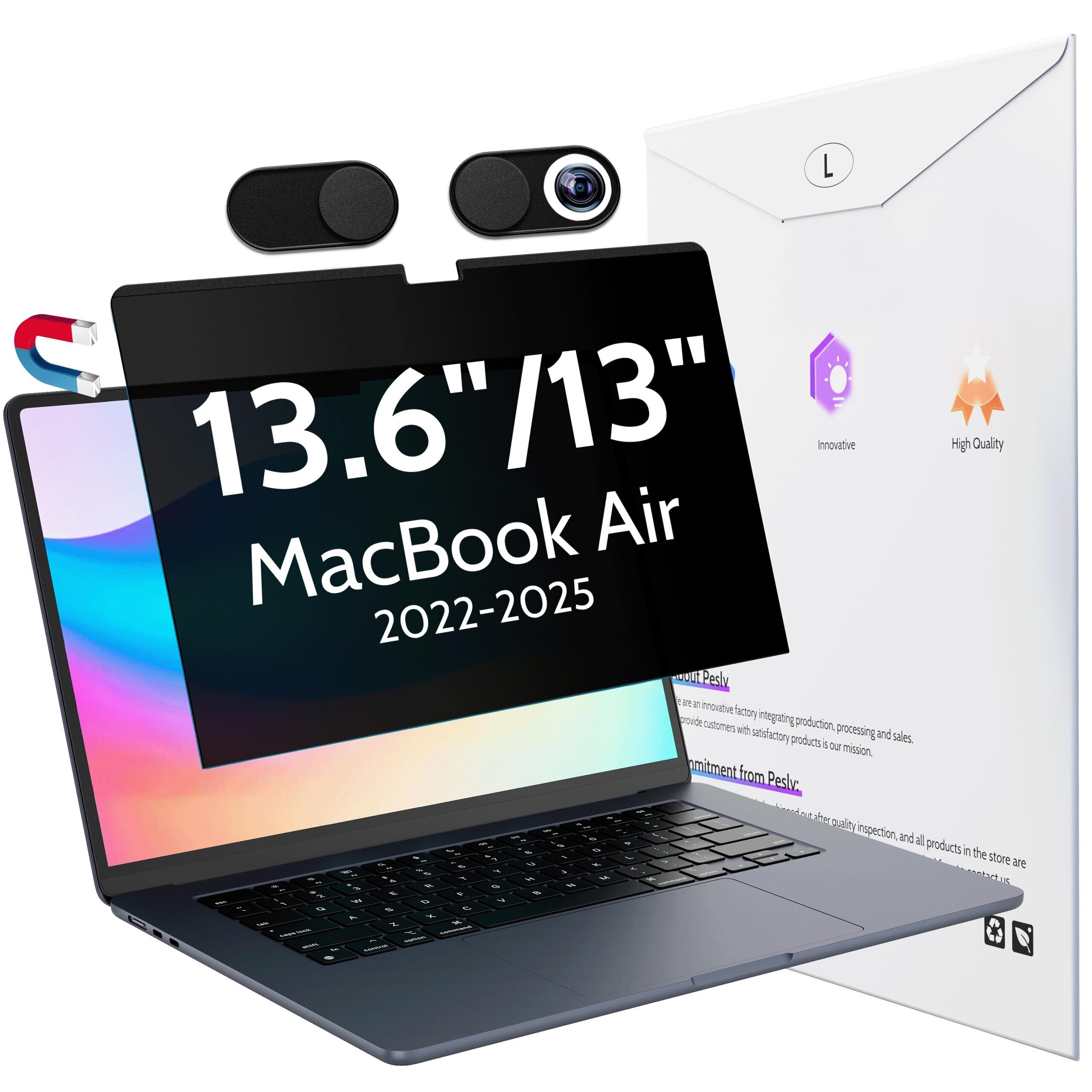 Macbook Air 13.6/13 (2022-2025、M2、M3、M4)用マグネット覗き見防止フィルム、取り外し可能なブルーライトカットアンチグレアスクリーンフィルター、Mac ートパソコン用の磁石ぞき見防止