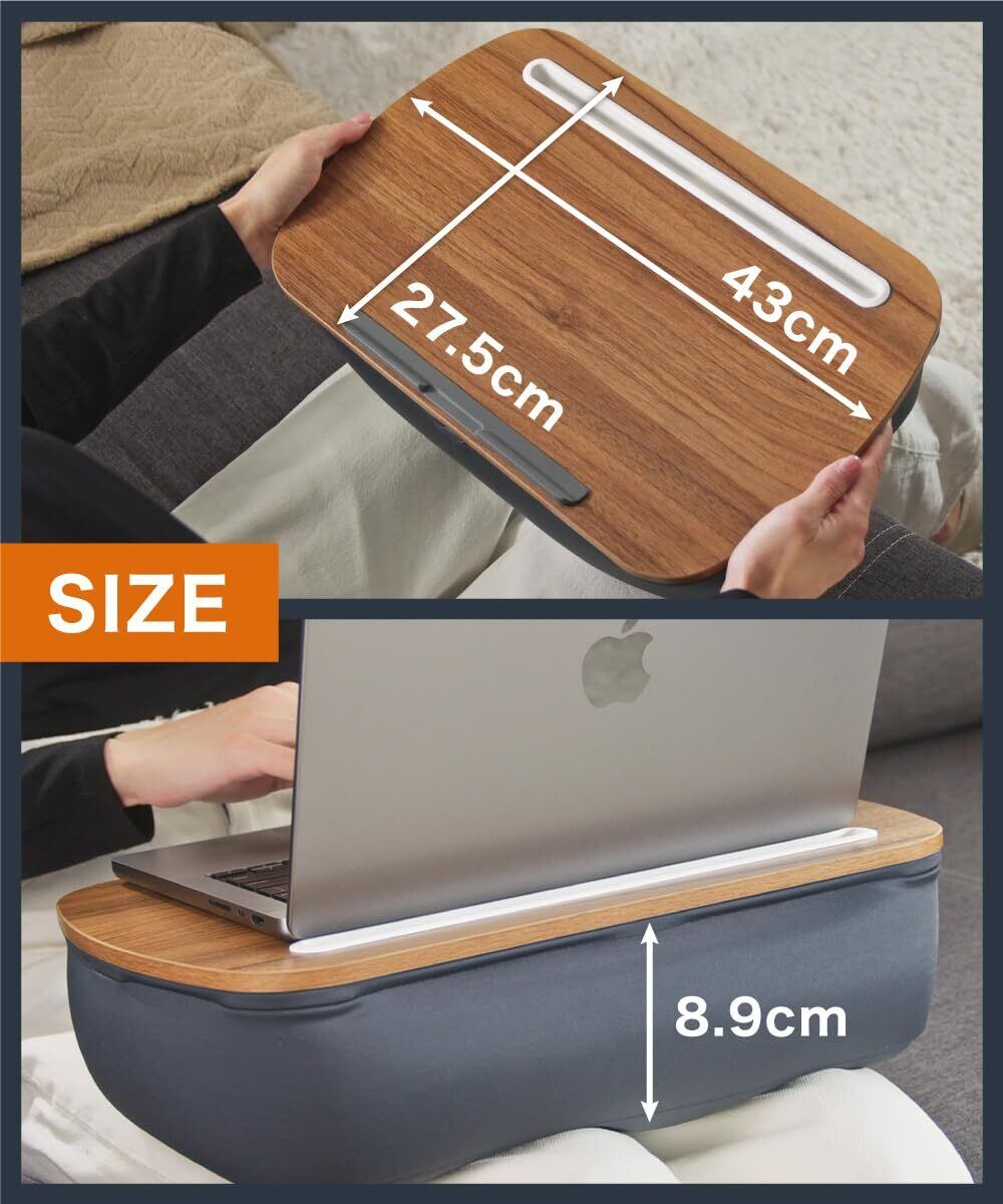 LOE(ロエ) 【日本企画】 膝上テーブル PC クッションテーブル 膝上デスク ベッド や ソファー 用 テーブル クッション 車で使える 【 滑り止め パッド・ 溝 付き 】 パソコン クッション