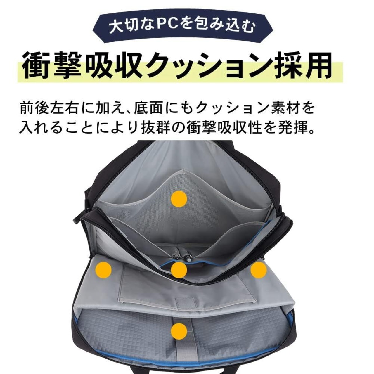 【撥水性・耐摩耗性】撥水性の高い生地を使用しているので撥水水性が抜群です、中に水が浸み込まないので 突然の雨でも安心!また傷にも強い生地なので耐摩耗性も高く、長い間お使いいただけます。優れた防水性と3構造のクッションがPCやタブレットを守ってくれます。