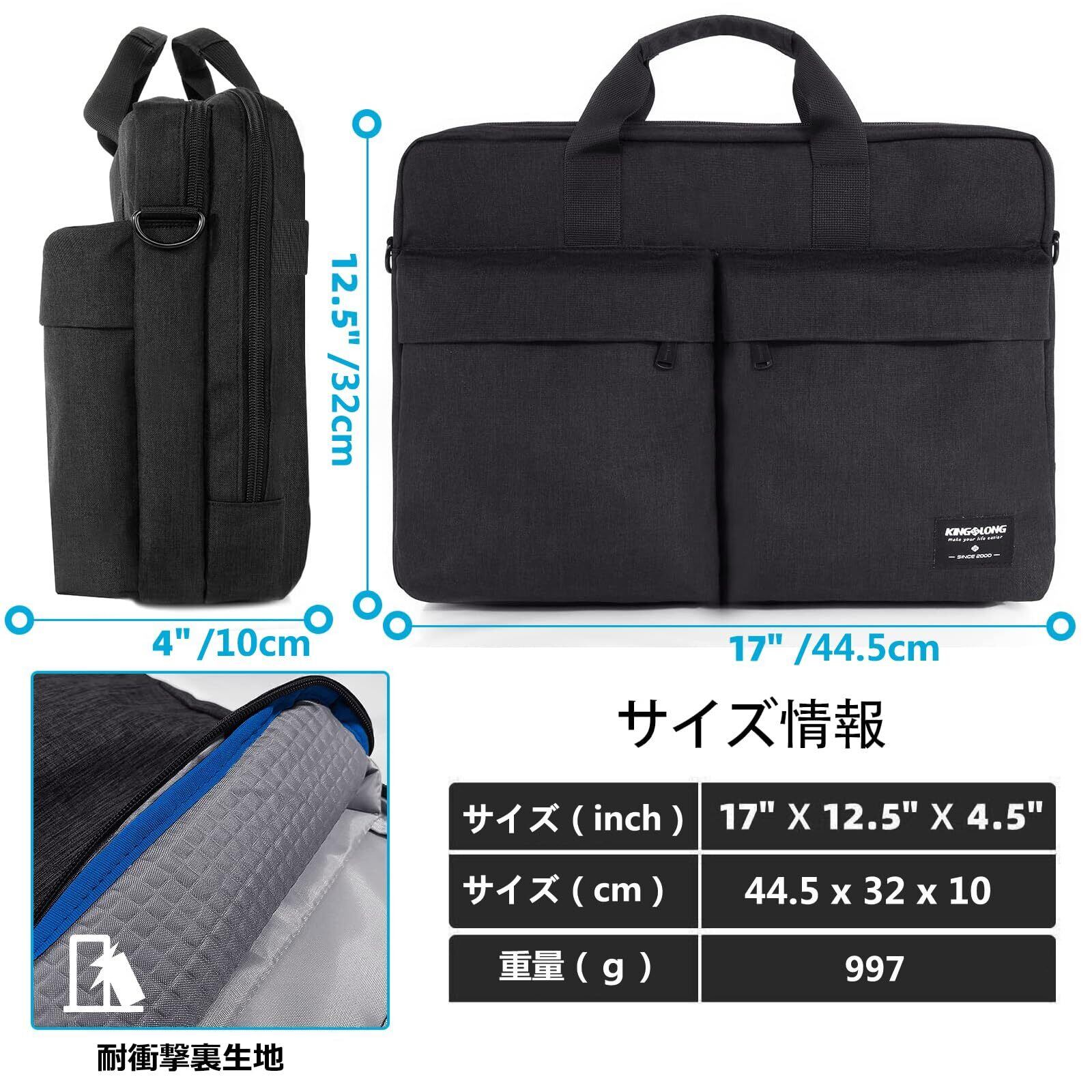 [KINGSLONG] pcケース ノートパソコンケース パソコンバッグ 2WAY ショルダー 手提げ パソコンブリーフケース ブラック17.3インチ