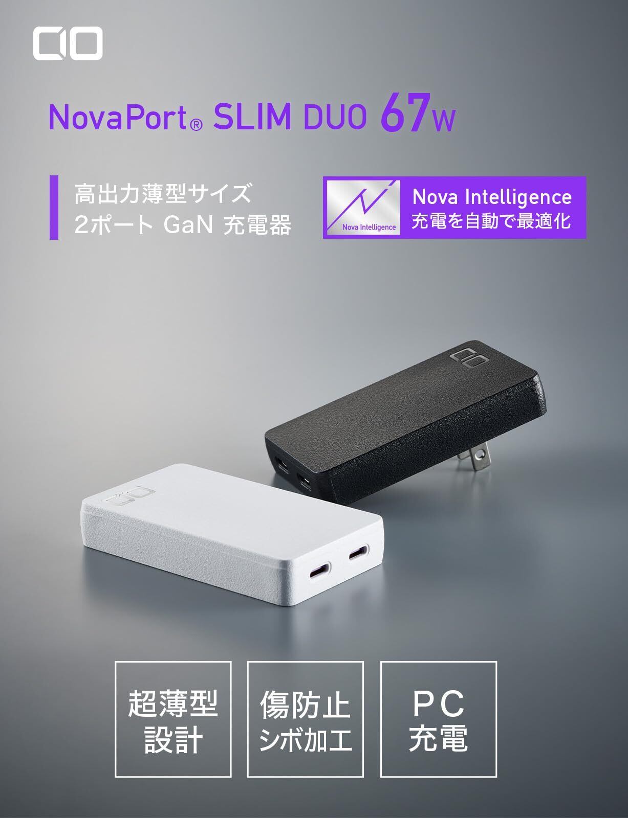 CIO NovaPort SLIM DUO 65W 2C [極薄 14mm CIO独自技術 NovaIntelligence搭載] PD GaN 高出力 2ポート Type-C 小型 急速充電器 タイプc USB 同時充電 iPhone 17 / Air / 16 / 15 Android Macbook iPad ノートPC (ブラック)
