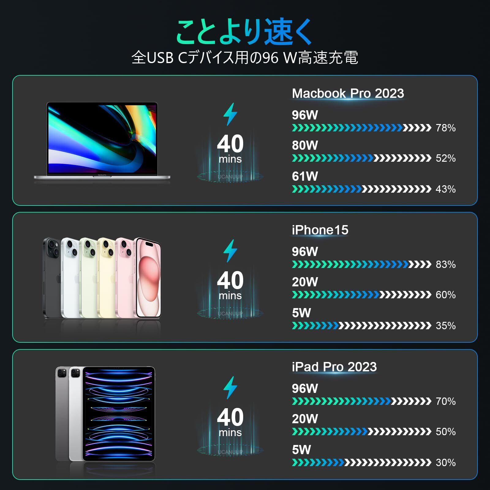 MacBook pro充電器 96W USB-C Apple 純正 電源アダプタ アップル タイプc Ac アダプター Mac Book Pro Air Retina 12/13/14/15/16 Inch M3 M2 M1 2023,2022,2021,2020,2019,2018,2017 Iphone 15/IPad/Switch/Tablet PD3.0折疊式 Type-C互換急速充電器