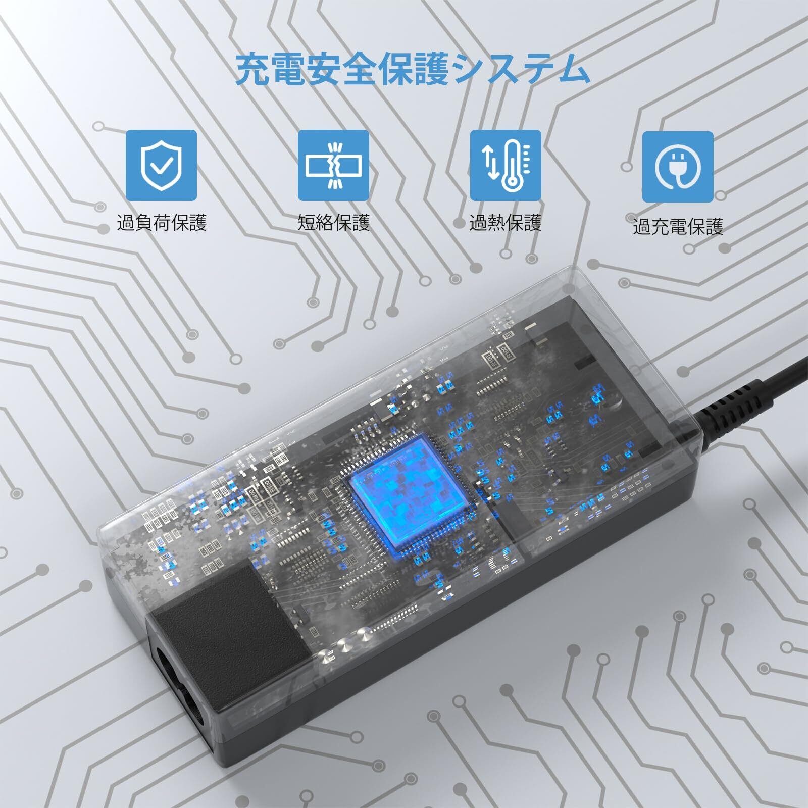 【安心防護機能】 ACアダプターは高品質の素材で製造され、充電保護システムにより、過充電、過放電、過電流、過電圧、過熱またはショートを避け、長期間安心してご使用いただけます。酸化防止金属プラグに防塵ケース設計で丈夫で抜けにくいです。