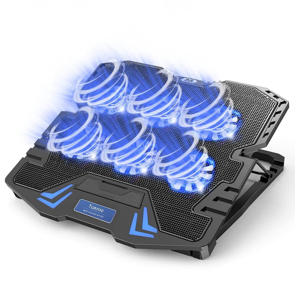 『Tuayoo新登場・強冷 冷却ファン』ノートパソコン冷却パッド 冷却台 6つ冷却ファン搭載 5段階高度調整 風量調節可 ノートPCクーラー 大風量・低騒音 2つUSBポート付 メタルメッシュデザイン 滑り止め付き ledストリップライト付 9-17インチまでのノートPC/Macbook/Macbook Pro/PS3/PS4等に対応 オフィス/在宅勤務/出張などに適用 日本語取扱書付 ブラック