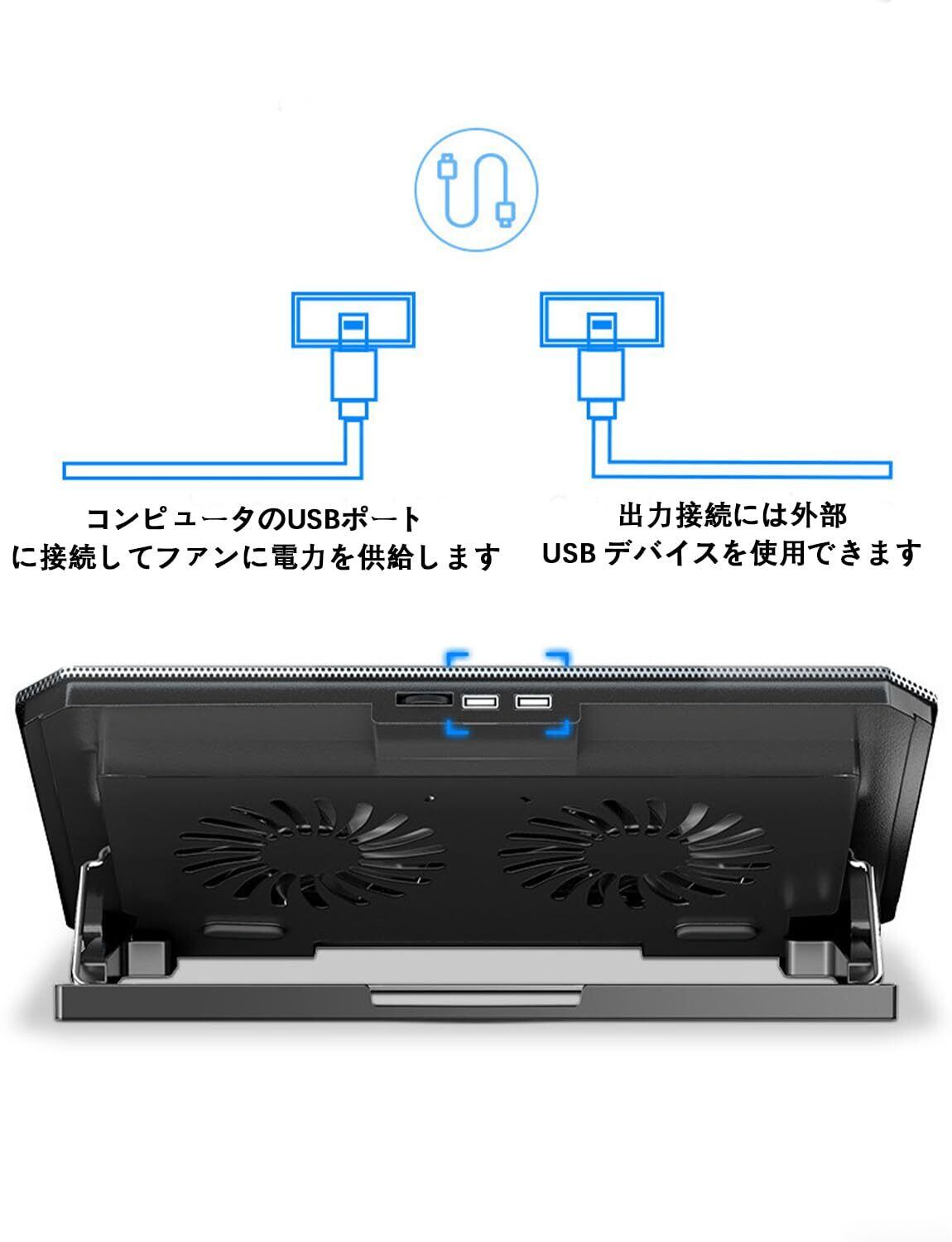 【大型冷却ファン2つ付き】 長さが13cmの強力冷却ファンを2つ搭載し、ファン回転数は2100±10%RPMです。 ノートパソコン熱量に合わせて、冷却ファンの風量を調節できます。