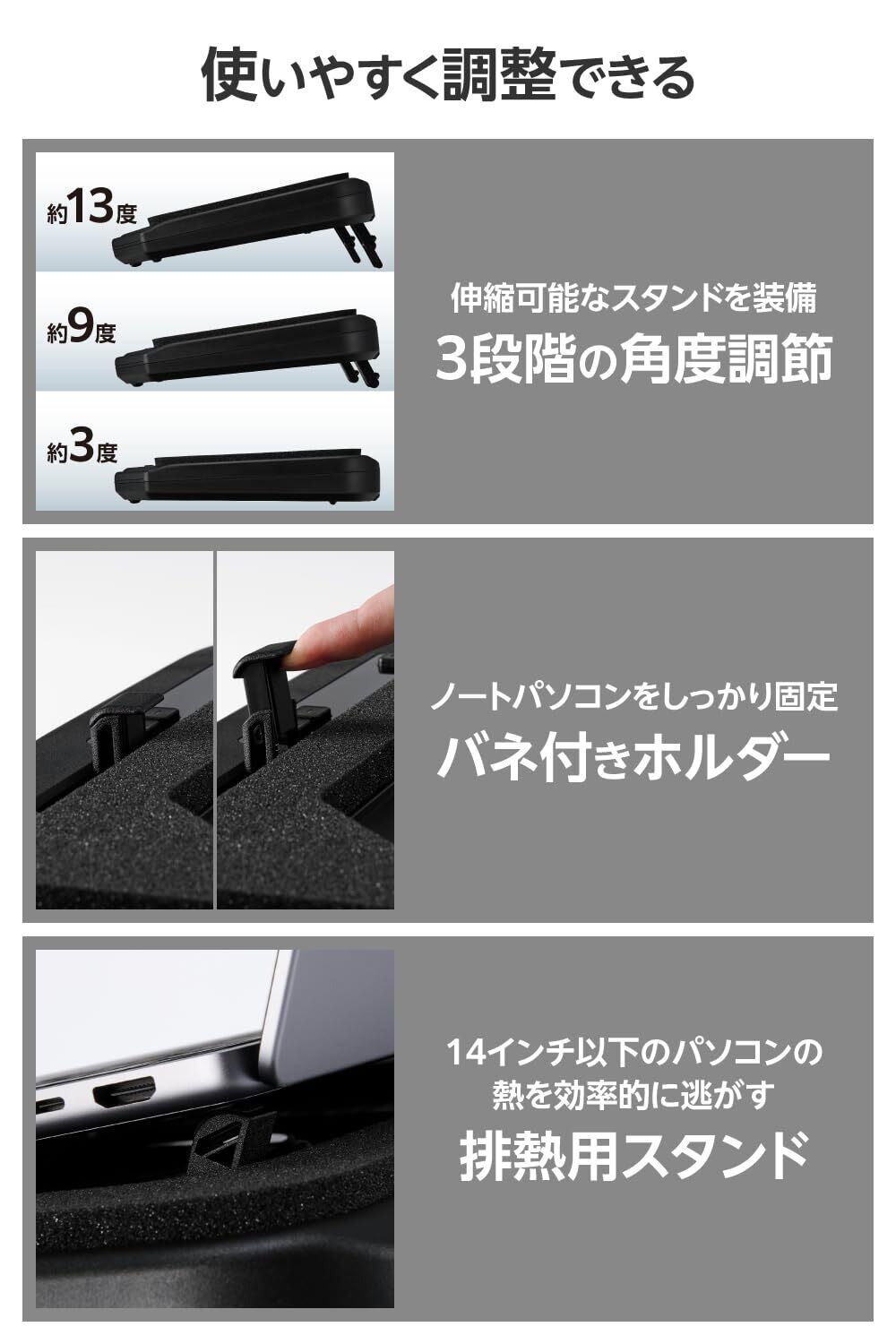 ■14インチ以下のパソコンにも対応し、排熱用スタンドを使って風通しを良くして熱を逃がします。
