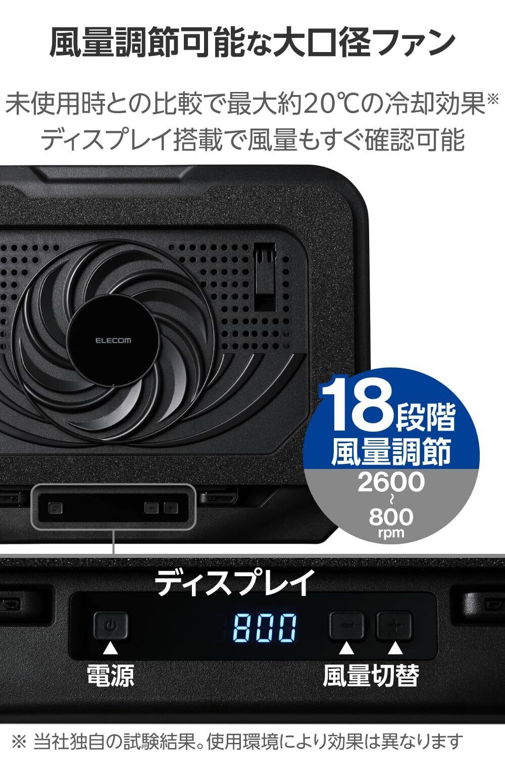 エレコム ノードパソコン冷却パッド 大風量冷却ファン搭載 強力冷却 静音 3段階角度調整 ~18インチ対応 ブラック SXWCL24