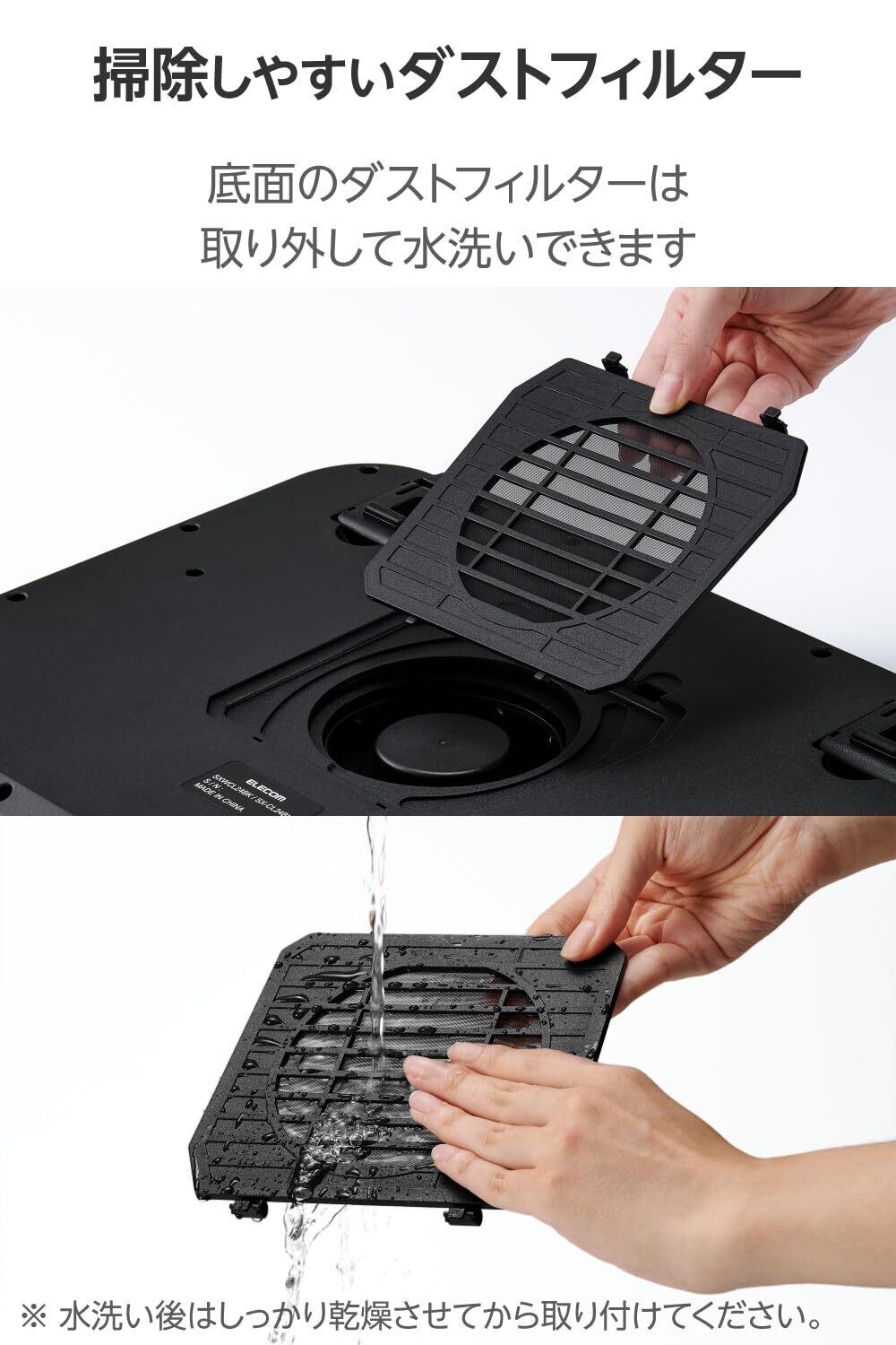 ■ダストフィルターは水洗い可能で、いつでも清潔に保てます。