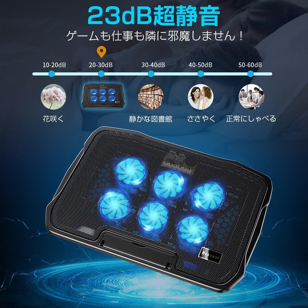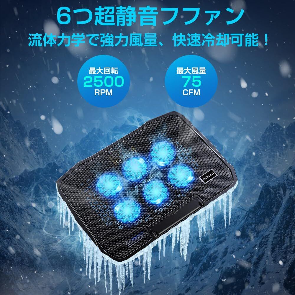 『新登場・強力 冷却ファン』 ノートパソコン冷却パッド 冷却台 6つの冷却ファン搭載 4段階高度調整可 風量調節可 ノートPCクーラー pc冷却スタンド 2つUSBポート 静音 滑り止め付 15.6インチ以内のノートパソコンやタブ レットに対応 オフィス/在宅勤務/出張用 ブラック, SR-01