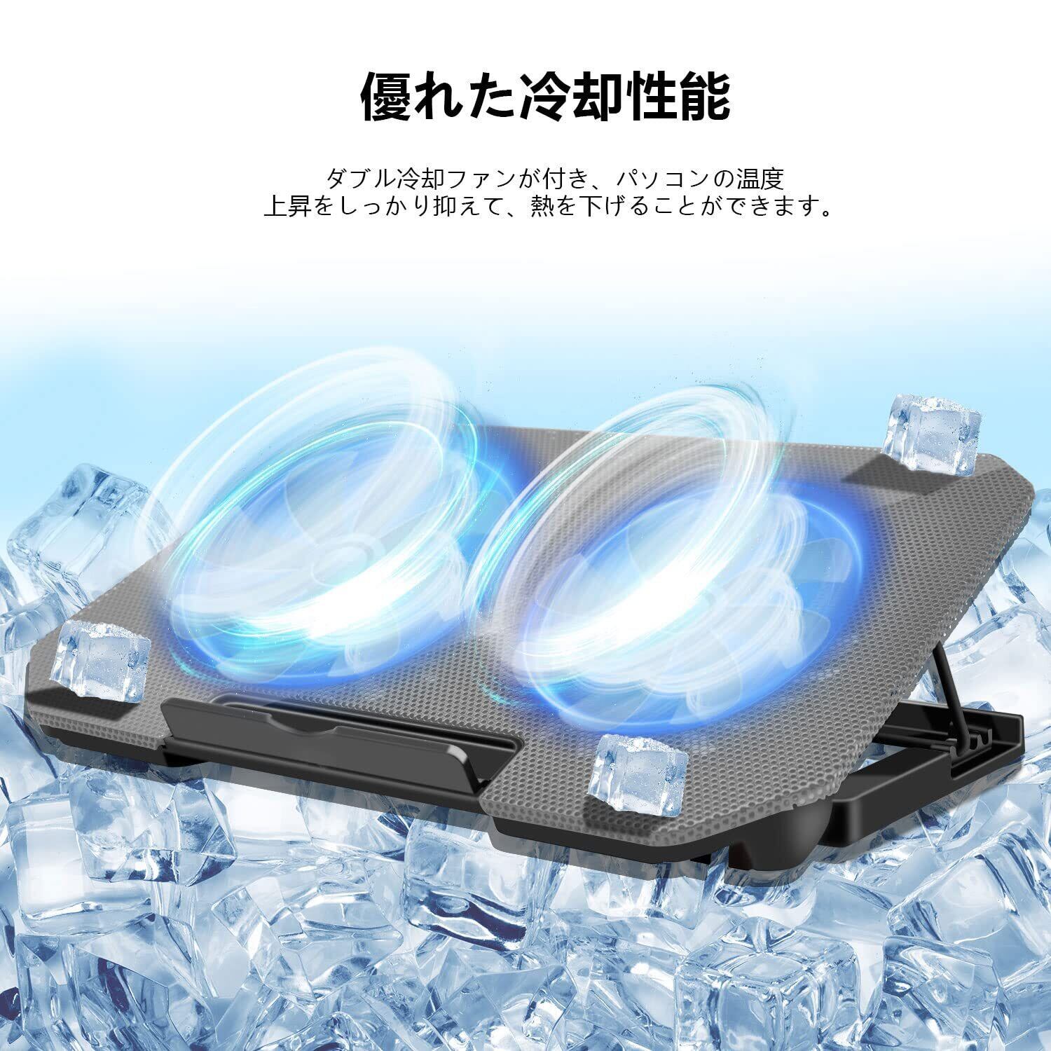 【大型冷却ファン2つ付き】 長さが13cmの強力冷却ファンを2つ搭載し、ファン回転数は2100±10%RPMです。 ノートパソコン熱量に合わせて、冷却ファンの風量を調節できます。